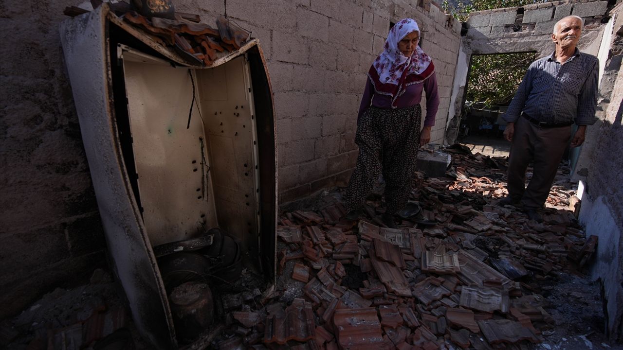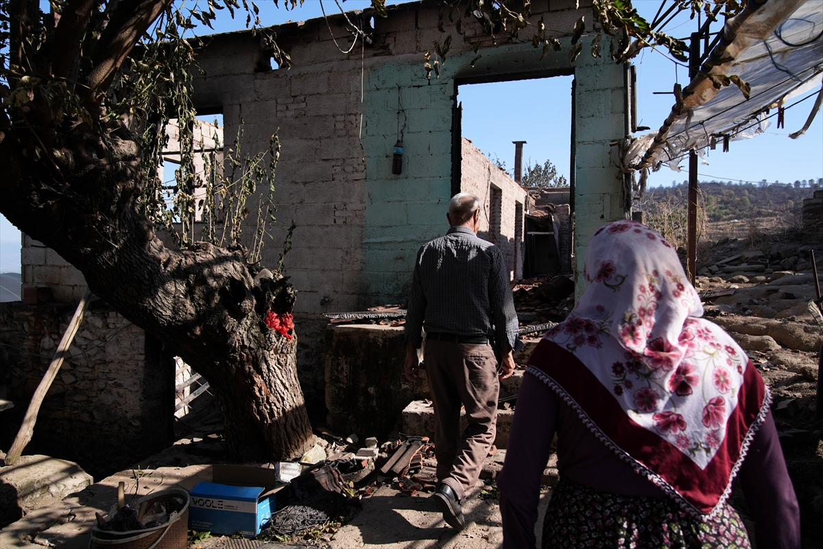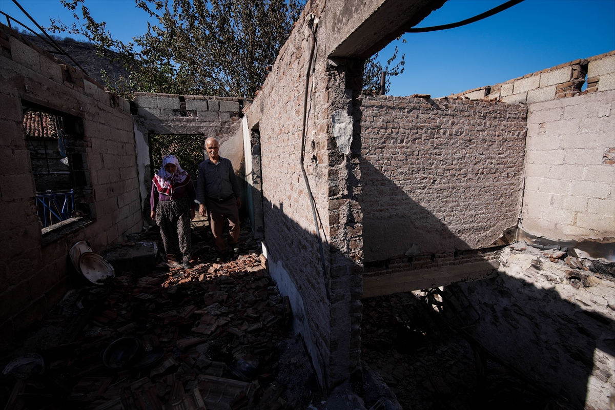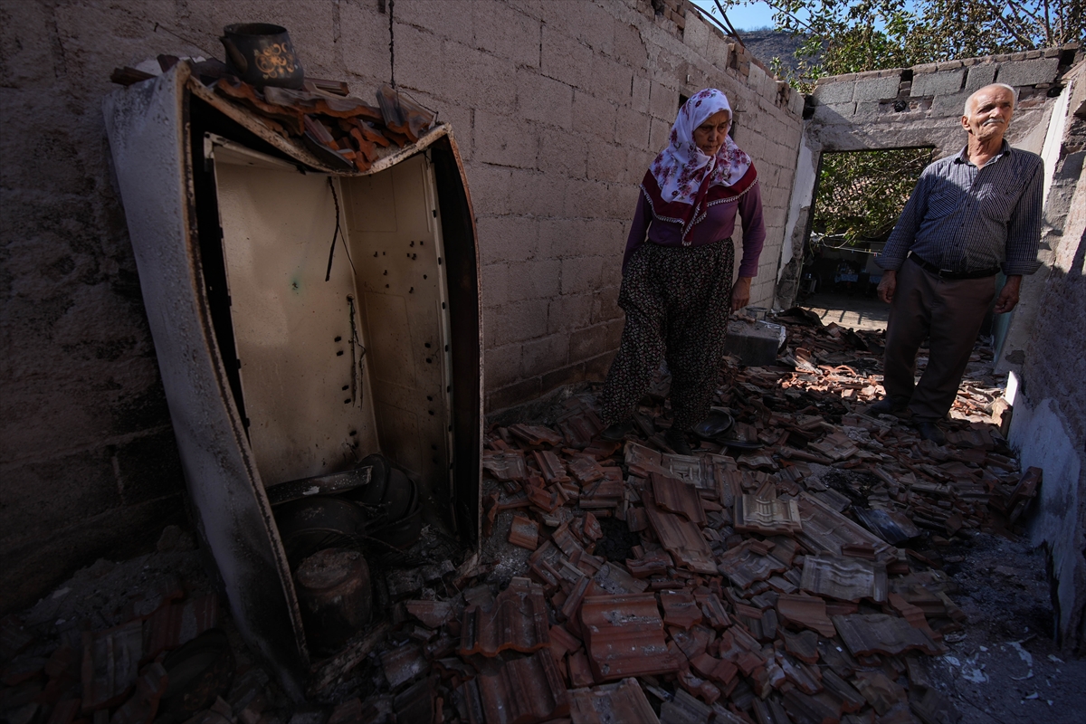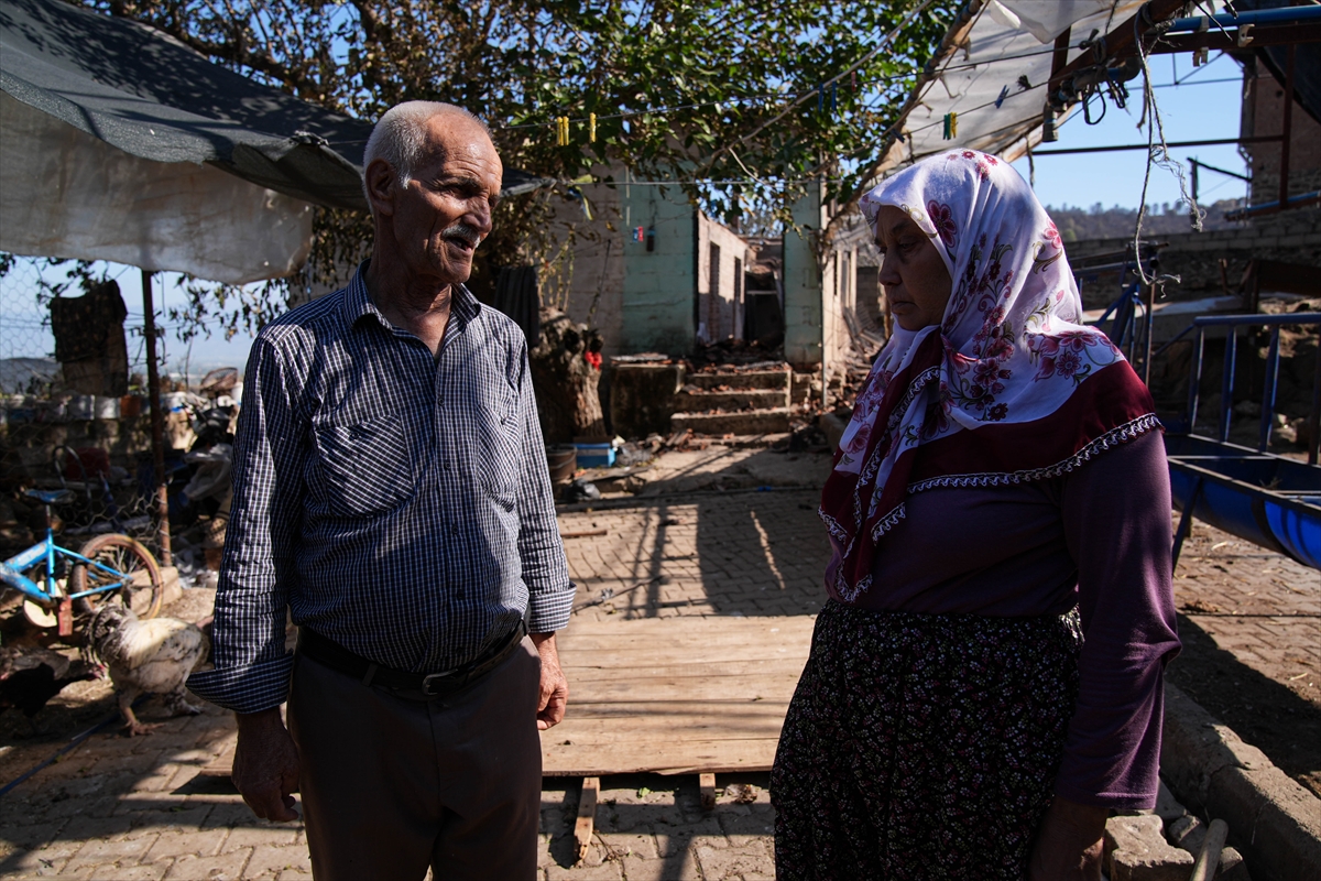 Alevlerin mahalleyi kısa sürede sardığını dile getiren Öksüz, "Hayvanlarımız, samanlarımız vardı. Hayvanları kaçırdık. Gördüğünüz gibi evler yandı. Bir saatte yandı geçti evimiz. Dağlar, taşlar, her taraf kül oldu. Konteynerimiz kuruluyor. Devletimiz, milletimiz sağ olsun. Bu yangından hiçbir şey kurtulamazdı. Allah'tan gelene razıyız." diye konuştu.