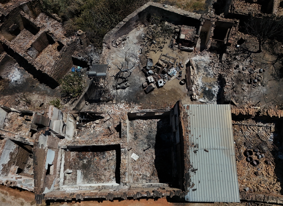 Yangında zarar gören alanlar ise dronla görüntülendi.