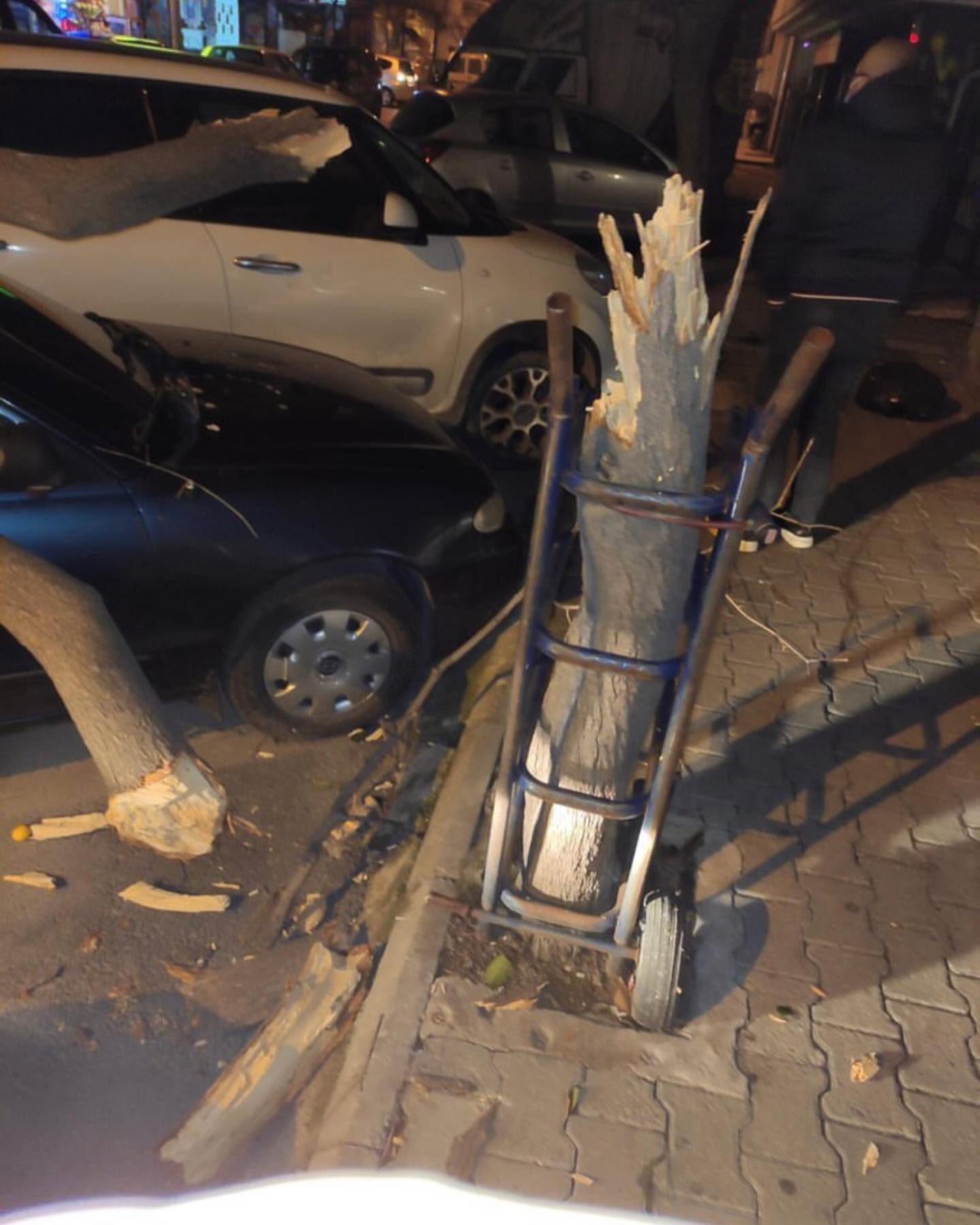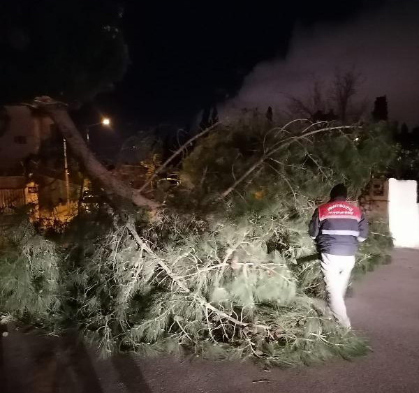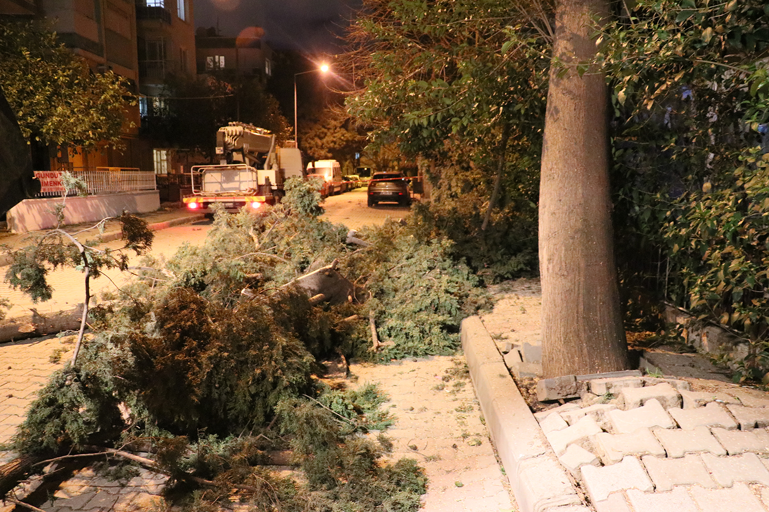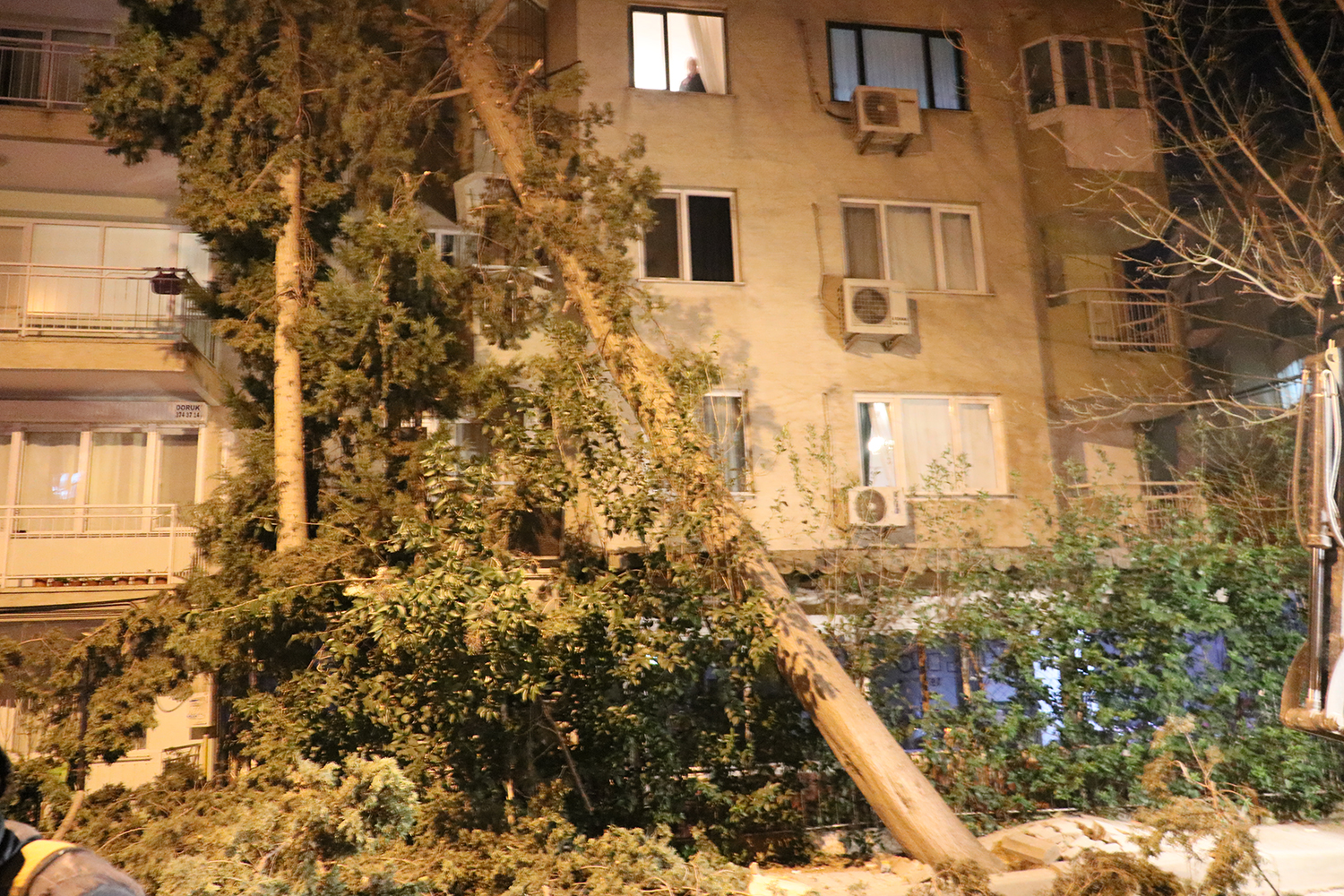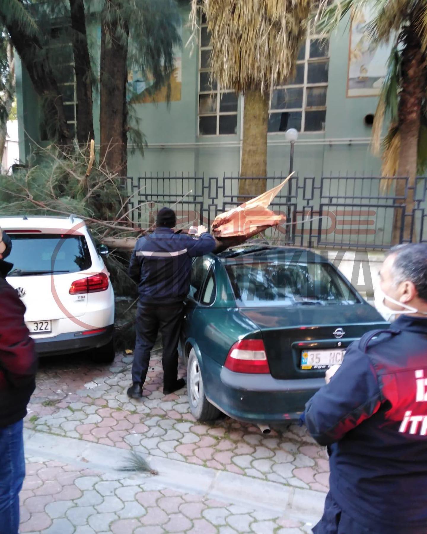 İzmir'de etkili olan fırtına nedeniyle ağaçlar devrildi, çatılar uçtu, tekneler alabora oldu.