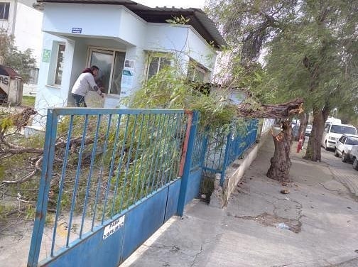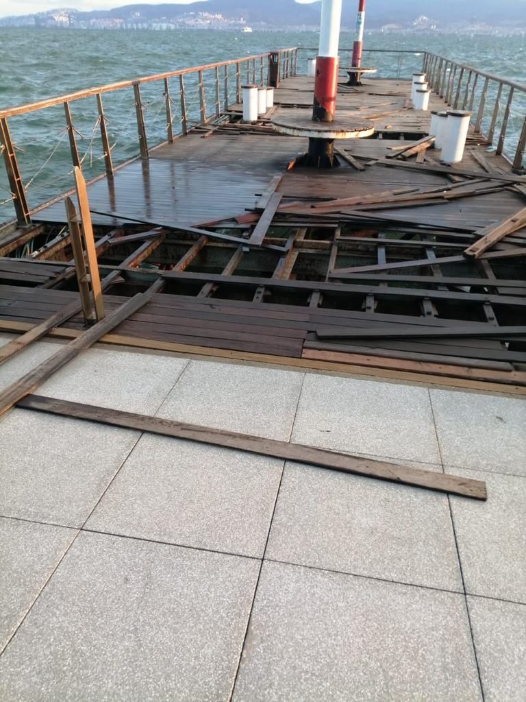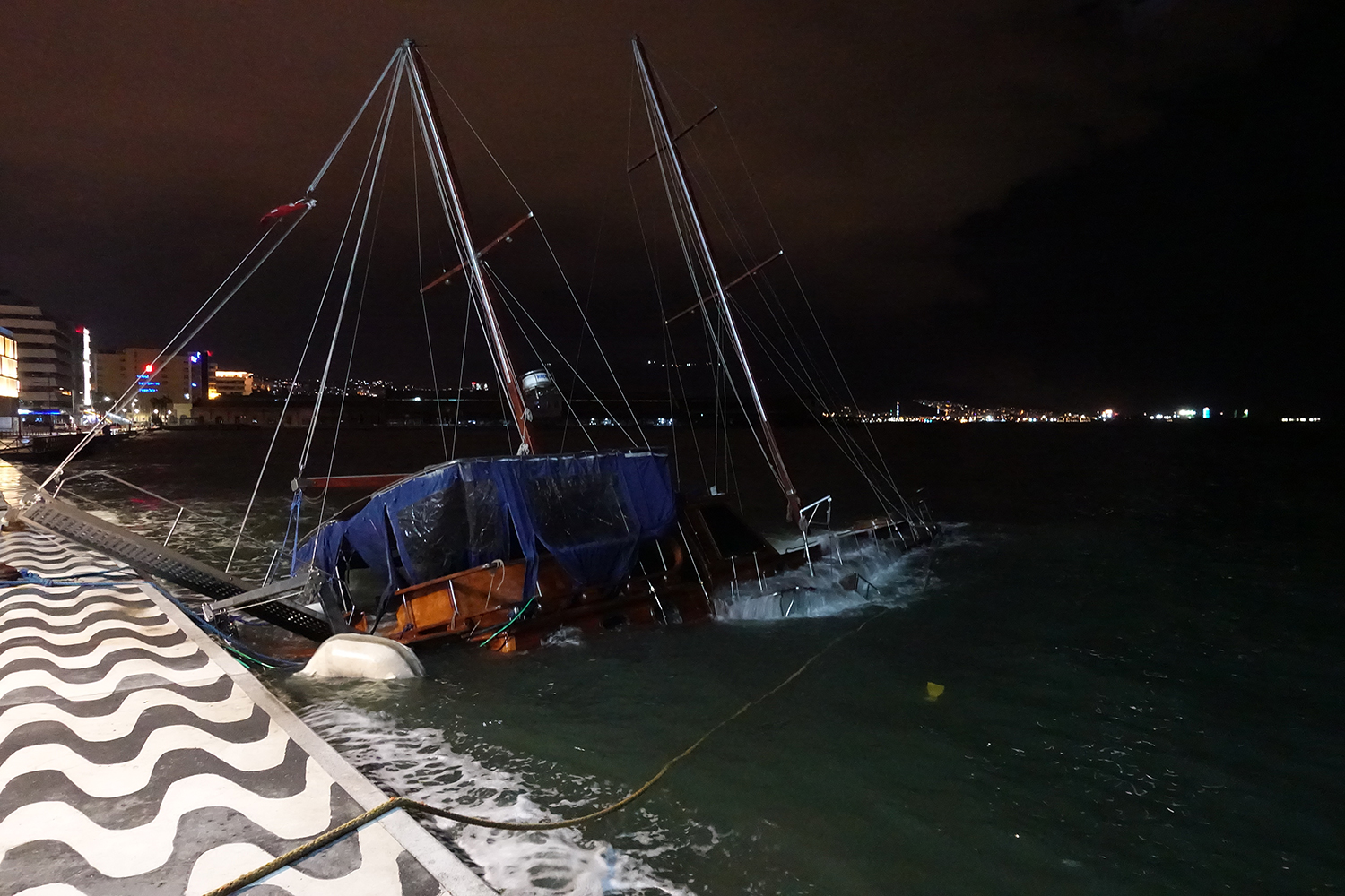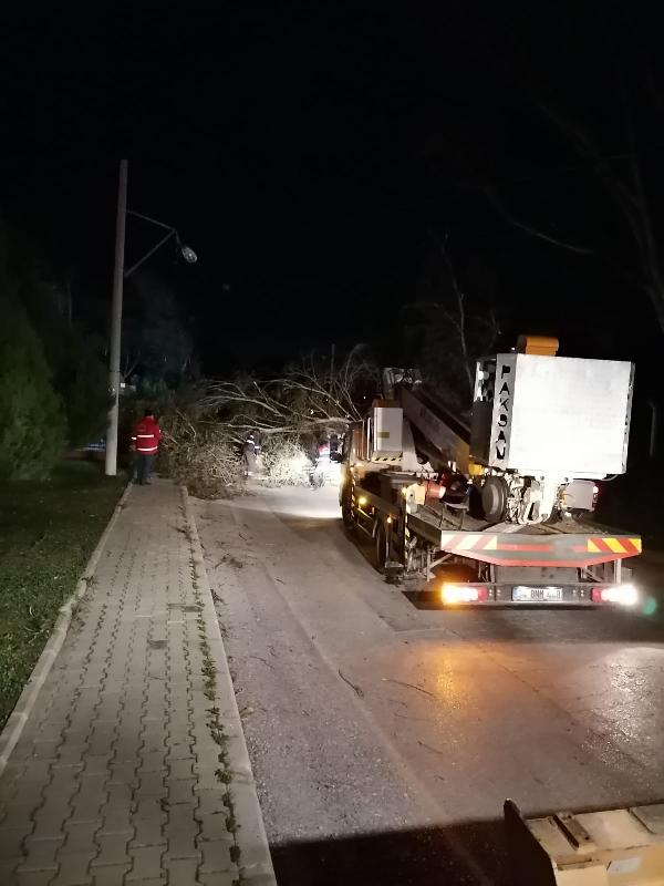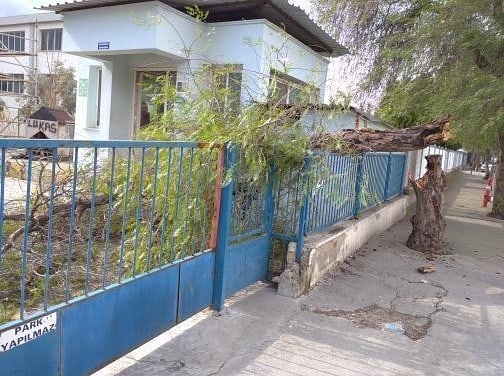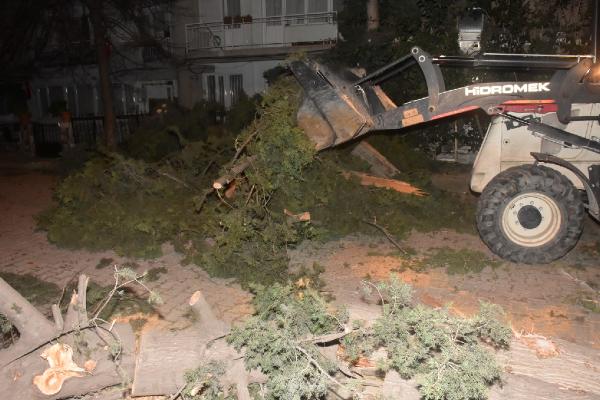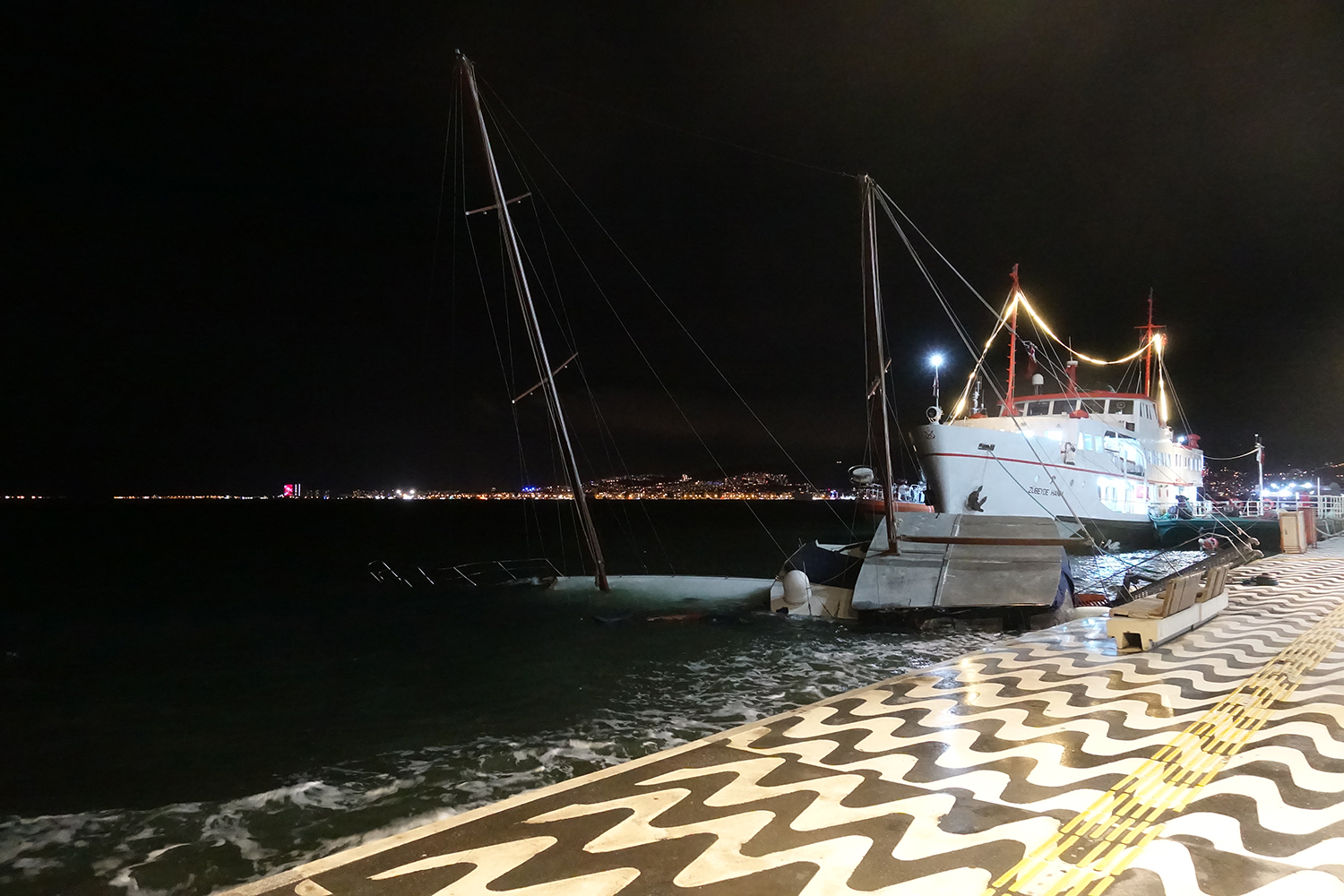 İzmir'de etkili olan fırtına nedeniyle ağaçlar devrildi, çatılar uçtu, tekneler alabora oldu.