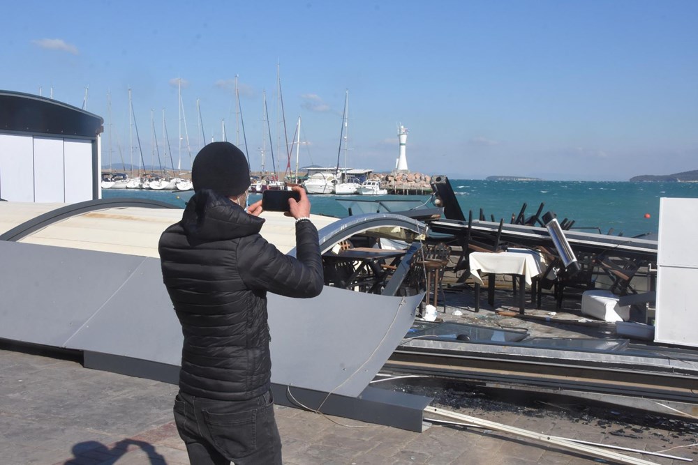 Gece saatlerinde etkisini artıran fırtınadan dolayı restoran ve kafeteryaların masalarıyla sandalyeleri kullanılamaz hale gelirken; 1 mekanın da camları patladı. Sabahın ilk ışıklarında fırtınanın neden olduğu zararı gören Urlalılar şaşkınlıklarını gizleyemedi. Cep telefonlarıyla yaşanan hasarı görüntülediler.