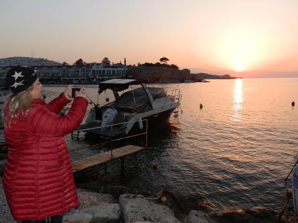 Foça, soğuk ve yağmurlu geçen günlerin ardından güneşin yüzünü göstermesiyle birlikte 19 -20 Şubat tarihlerinde günübirlik ziyaretçiler ve fotoğraf tutkunlarının akınına uğradı. Gruplar, kurdukları profesyonel ekipmanlarla tarihin babası olarak kabul edilen Herodot'un Foçalılar için söylediği, "Onlar kentlerini bizim yeryüzünde bildiğimiz en güzel gökyüzü altında ve en güzel iklimde kurdular" sözünü kanıtlarcasına en güzel görüntüleri yakalamaya çalıştı. Ahşap iskeleler üzerinde oturup akşam keyfi yapanlar, dingin mavi sulardan kısmetlerini arayan olta balıkçıları, el ele dolaşan çiftler, gün batımlarında fotoğraf karelerine ayrı bir renk kattı.