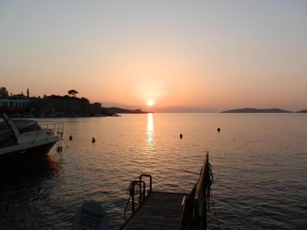 İzmir'in turistik Foça ilçesi, tarihi ve kültürel zenginliklerinin yanı sıra muhteşem gün batımı manzaralarıyla da dikkat çekiyor. Fotoğraf tutkunları gruplar halinde ilçeye gelerek doyumsuz görüntüleri objektifleriyle ölümsüzleştiriyor.
