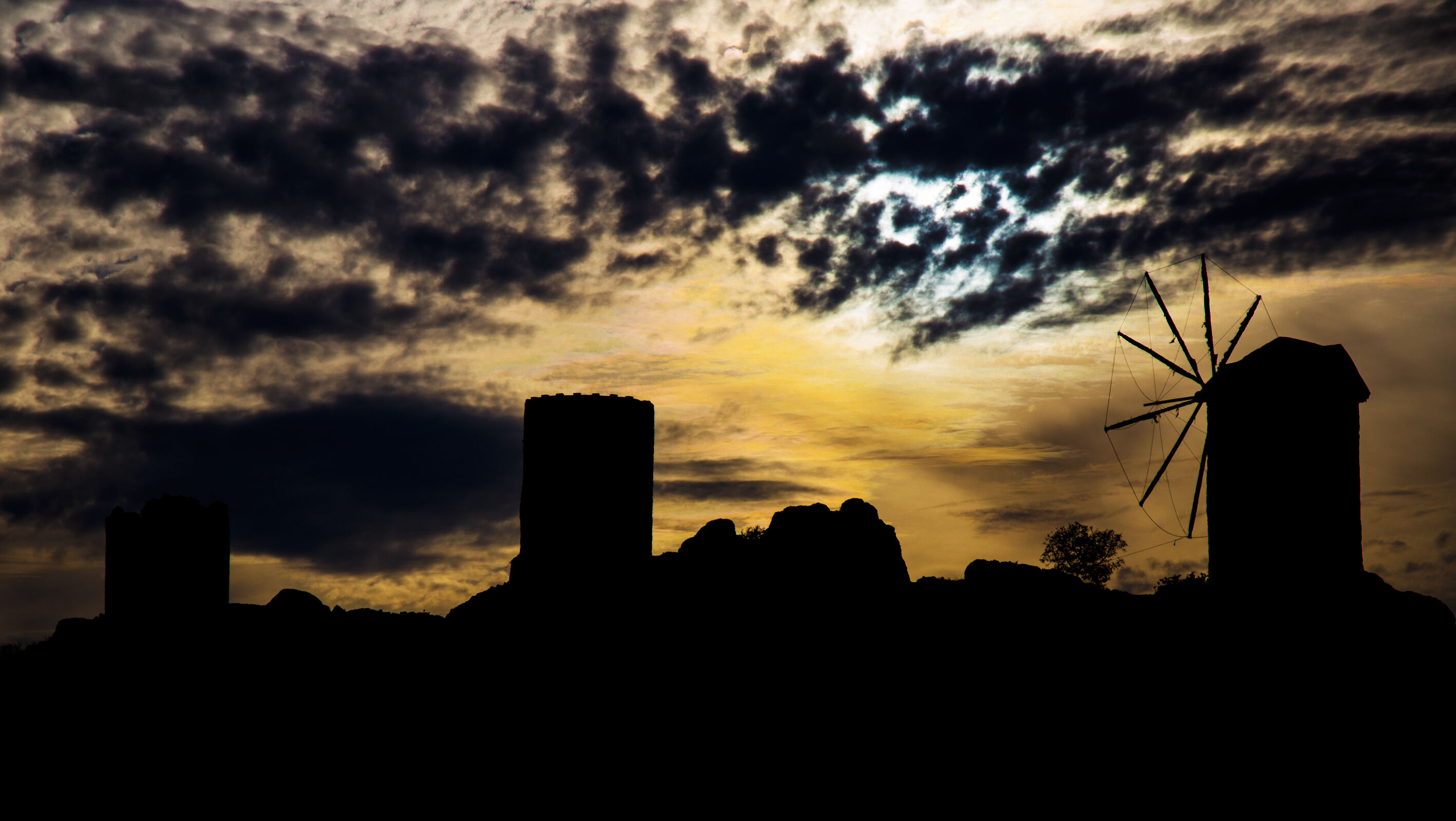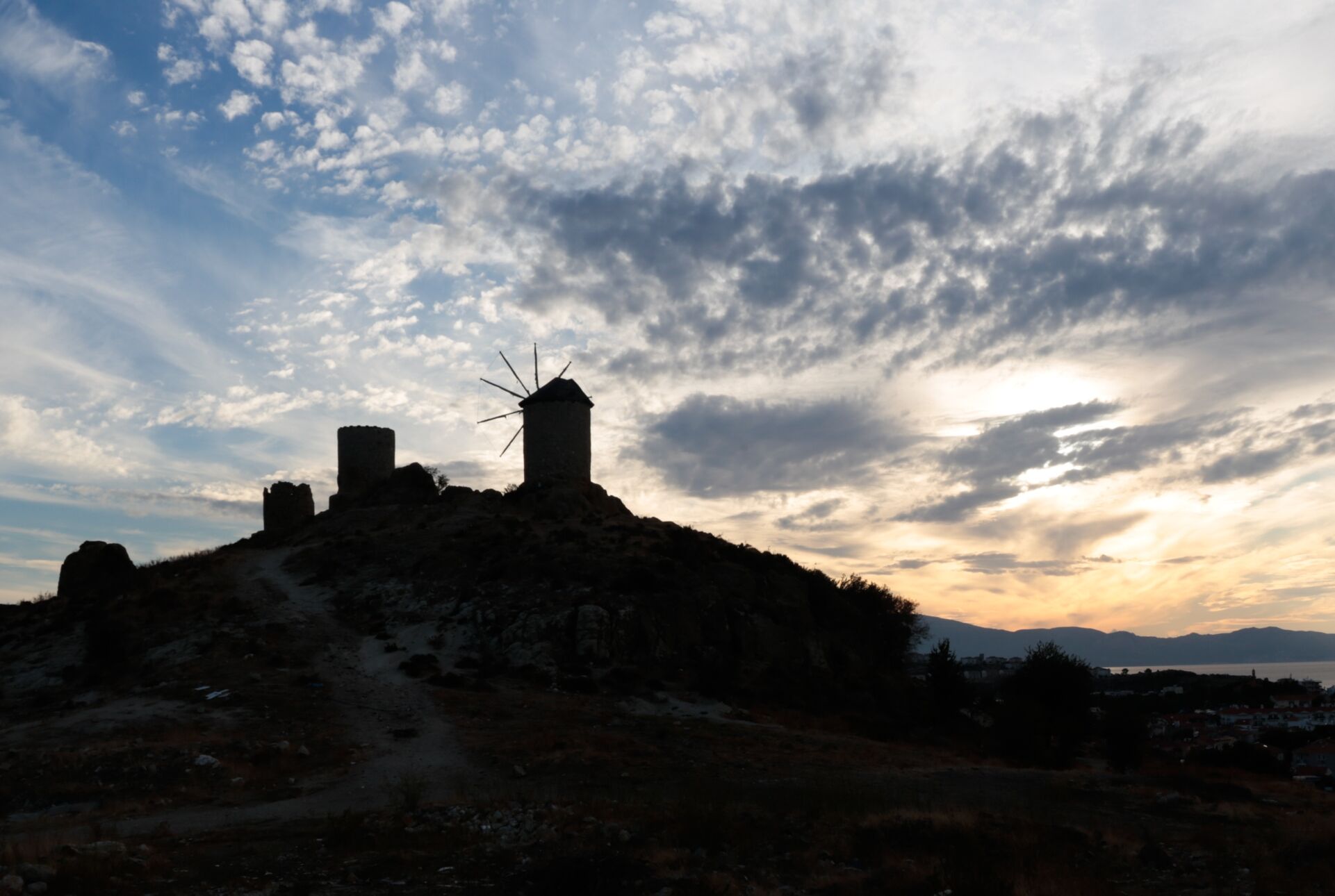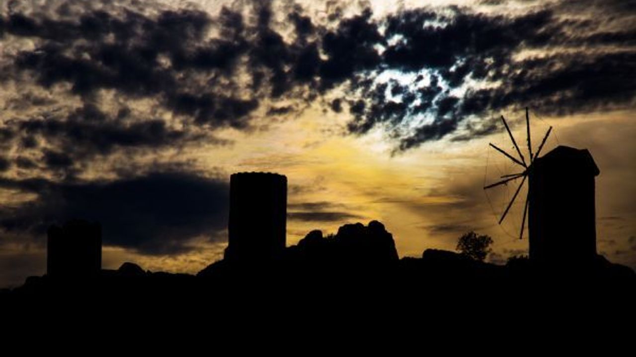 Ülkemizde Ege kıyılarının geleneksel yapılarından biri olan yel değirmenleri, gün batımındaki silüetiyle güzel görüntü oluşturdu.