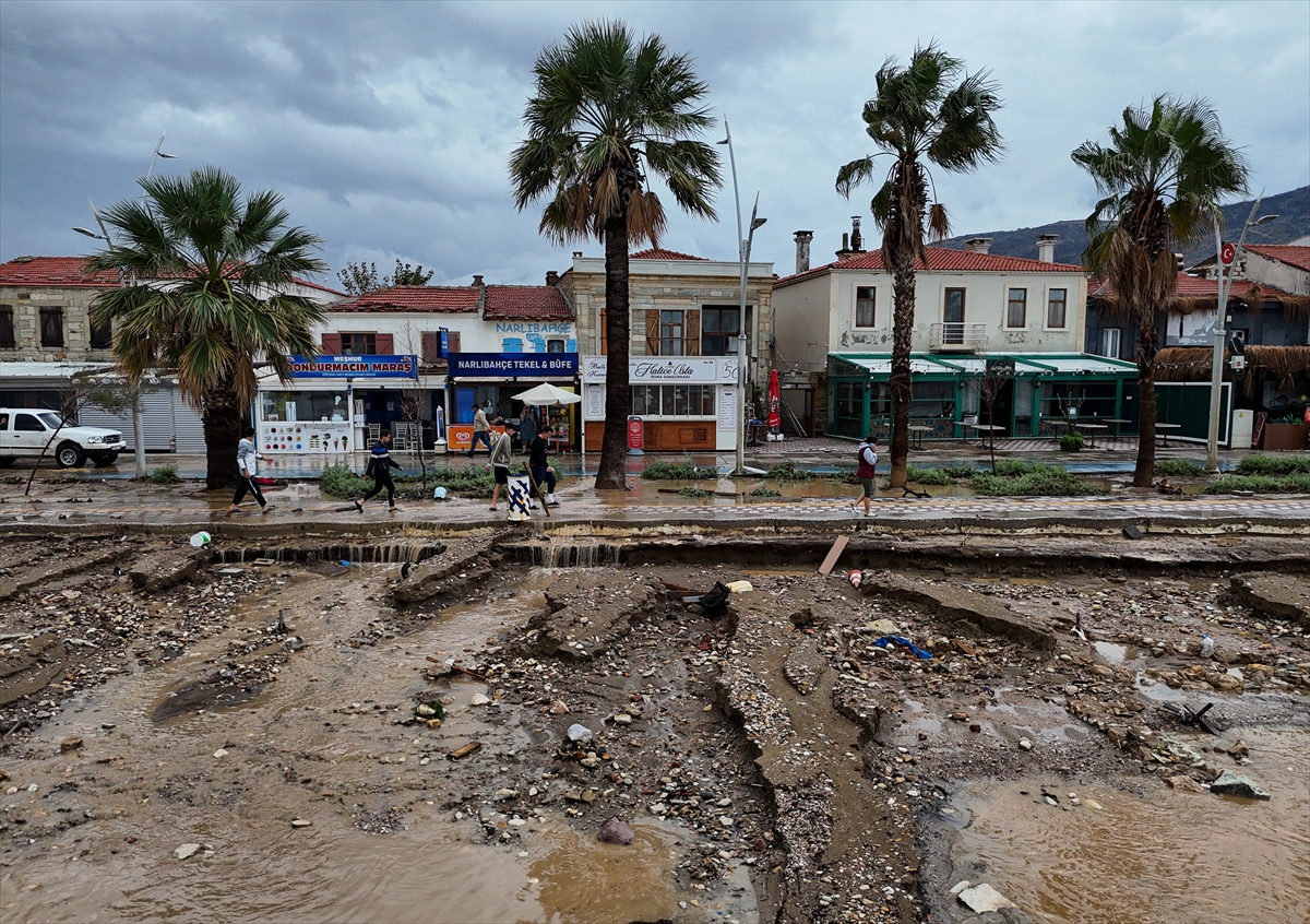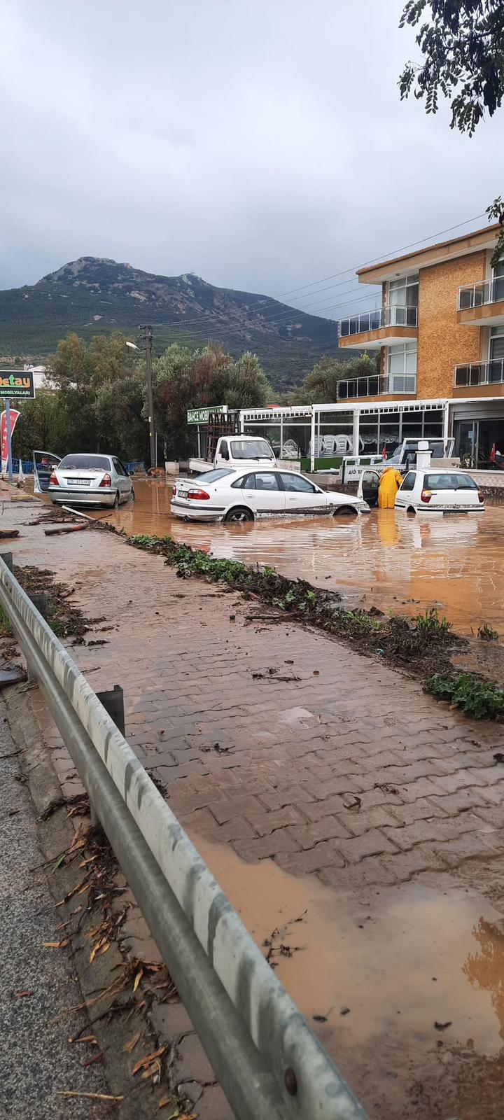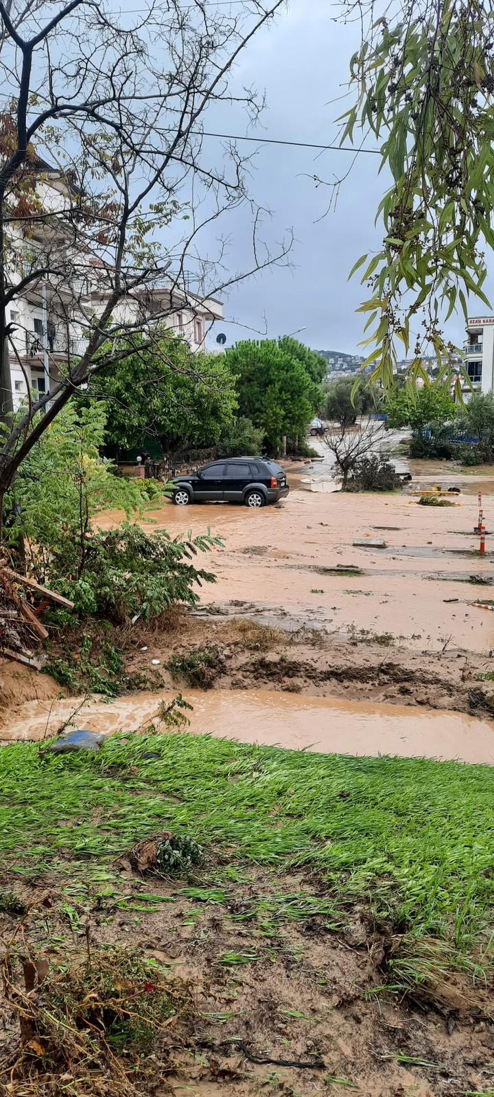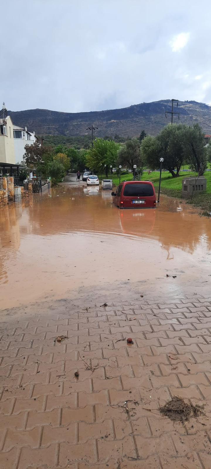 Urla'nın Çeşmealtı Mahallesi'nde rögarlar taştı, yollarda su birikintileri meydana geldi. Karaburun ilçesi Mordoğan Mahallesi'nde de yağışın etkisiyle yollarda su birikti, belediye ekipleri biriken suları kepçe yardımıyla tahliye etmeye çalıştı.