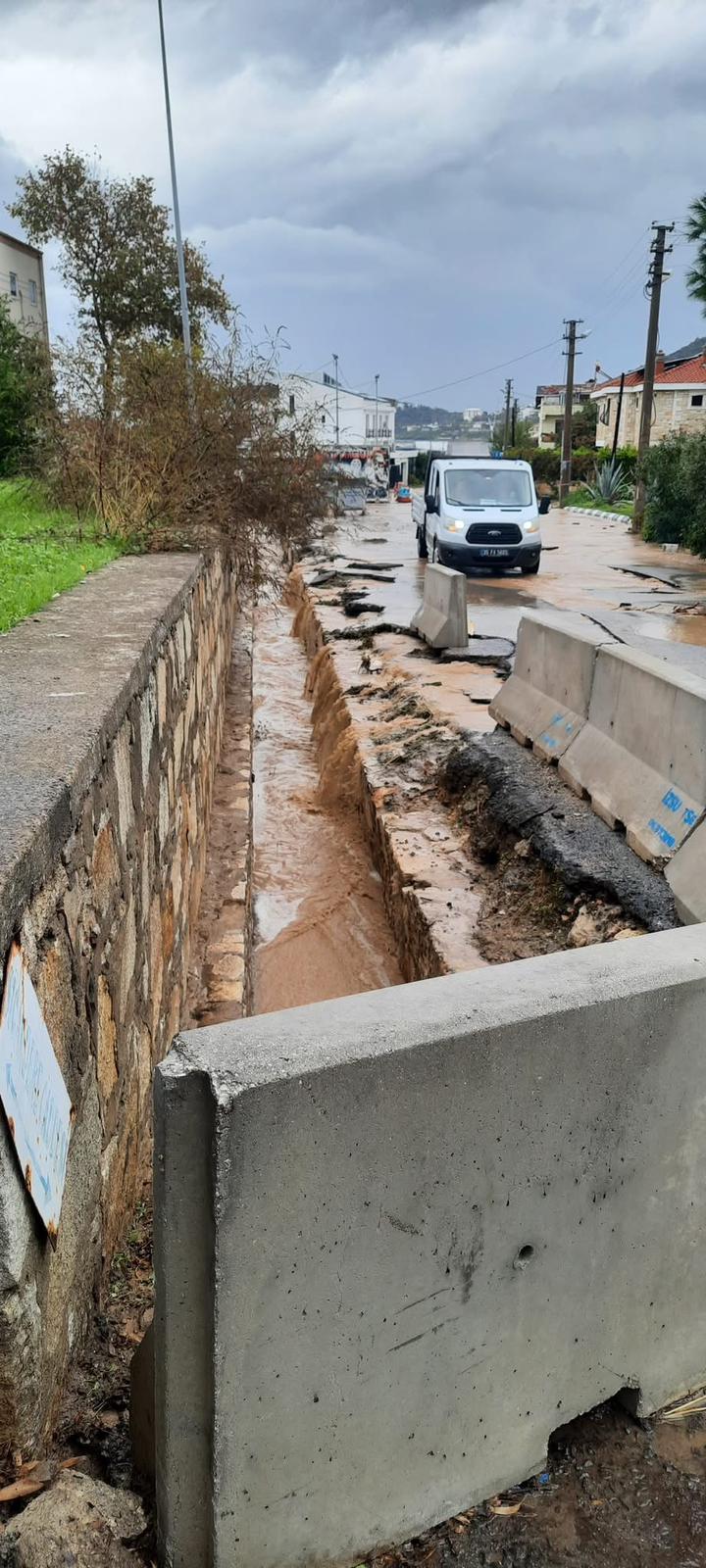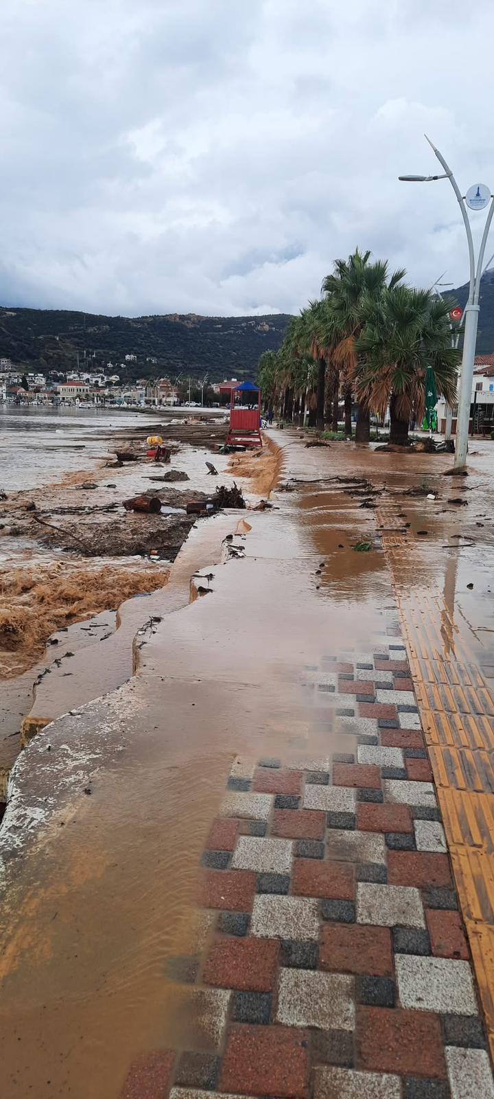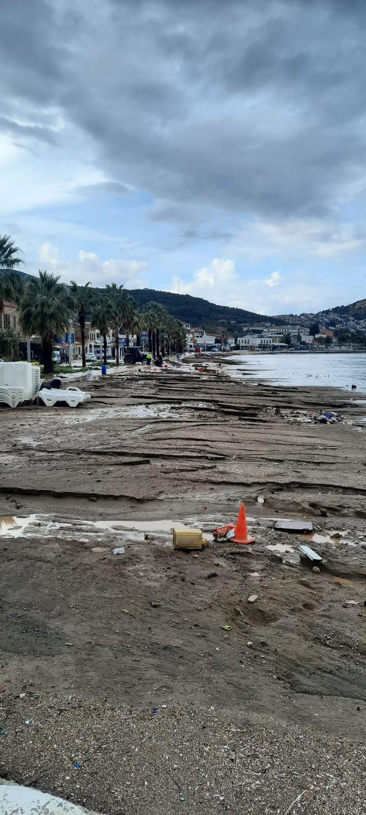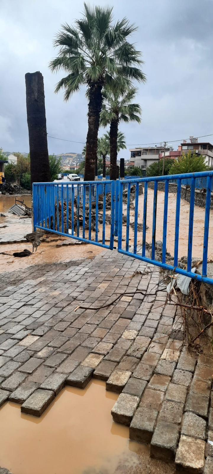 Urla'nın Çeşmealtı Mahallesi'nde rögarlar taştı, yollarda su birikintileri meydana geldi. Karaburun ilçesi Mordoğan Mahallesi'nde de yağışın etkisiyle yollarda su birikti, belediye ekipleri biriken suları kepçe yardımıyla tahliye etmeye çalıştı.