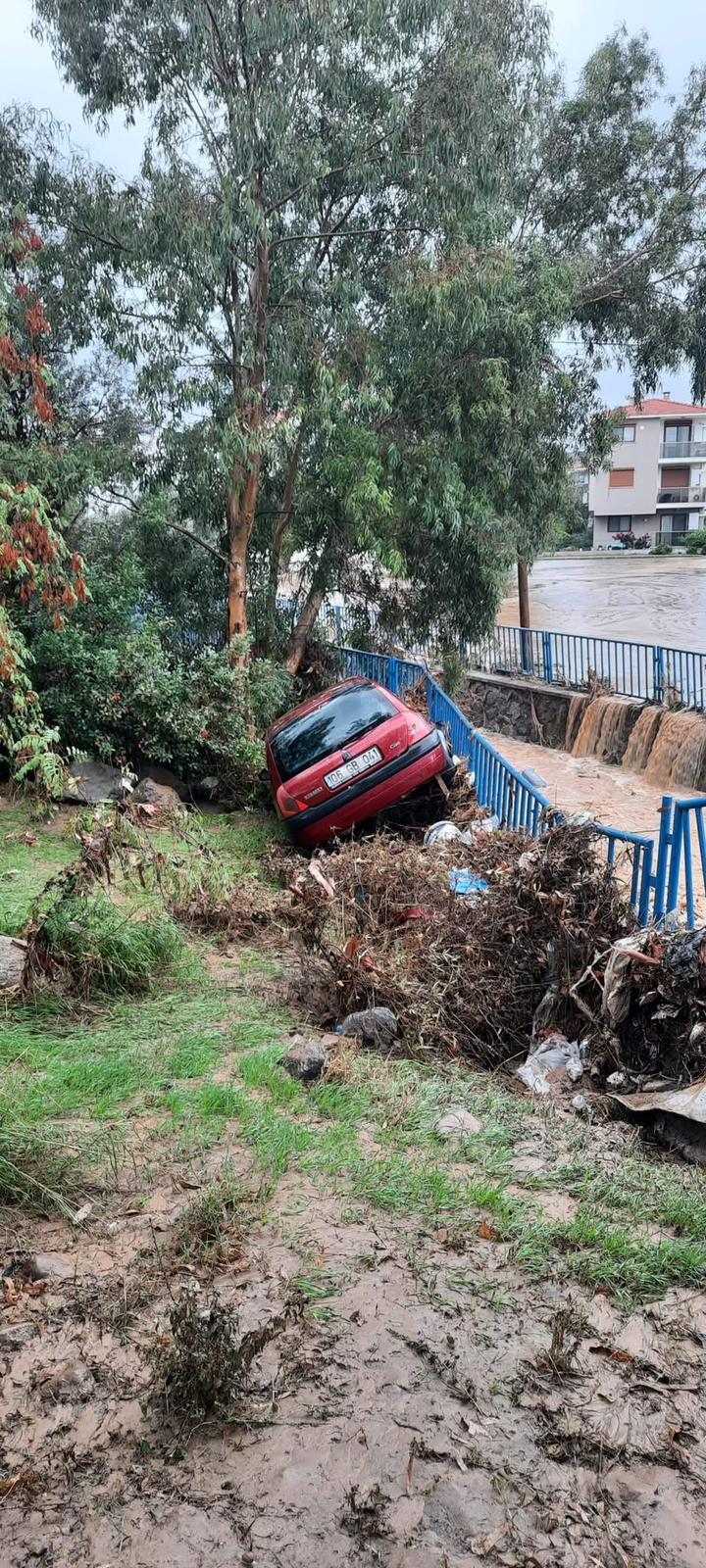 Mustafa Kemal Atatürk Mahallesi'ndeki dere, yağış nedeniyle taştı. Yükselen su dolayısıyla sürüklenen bir otomobil dere kenarındaki bariyerlere takıldı.