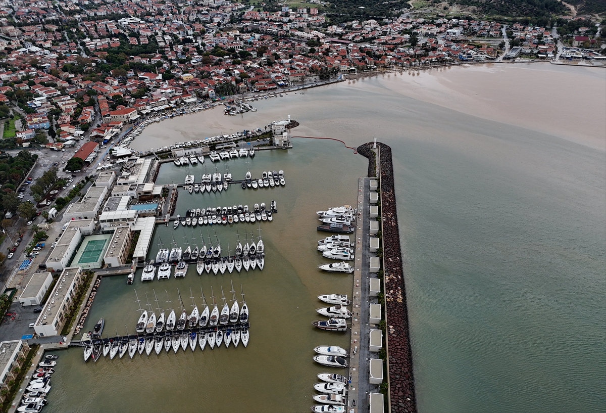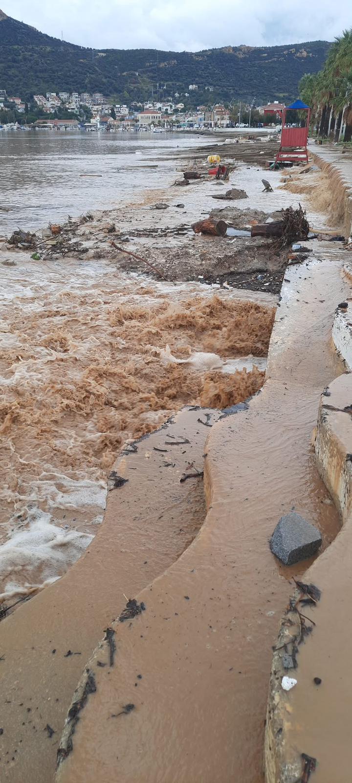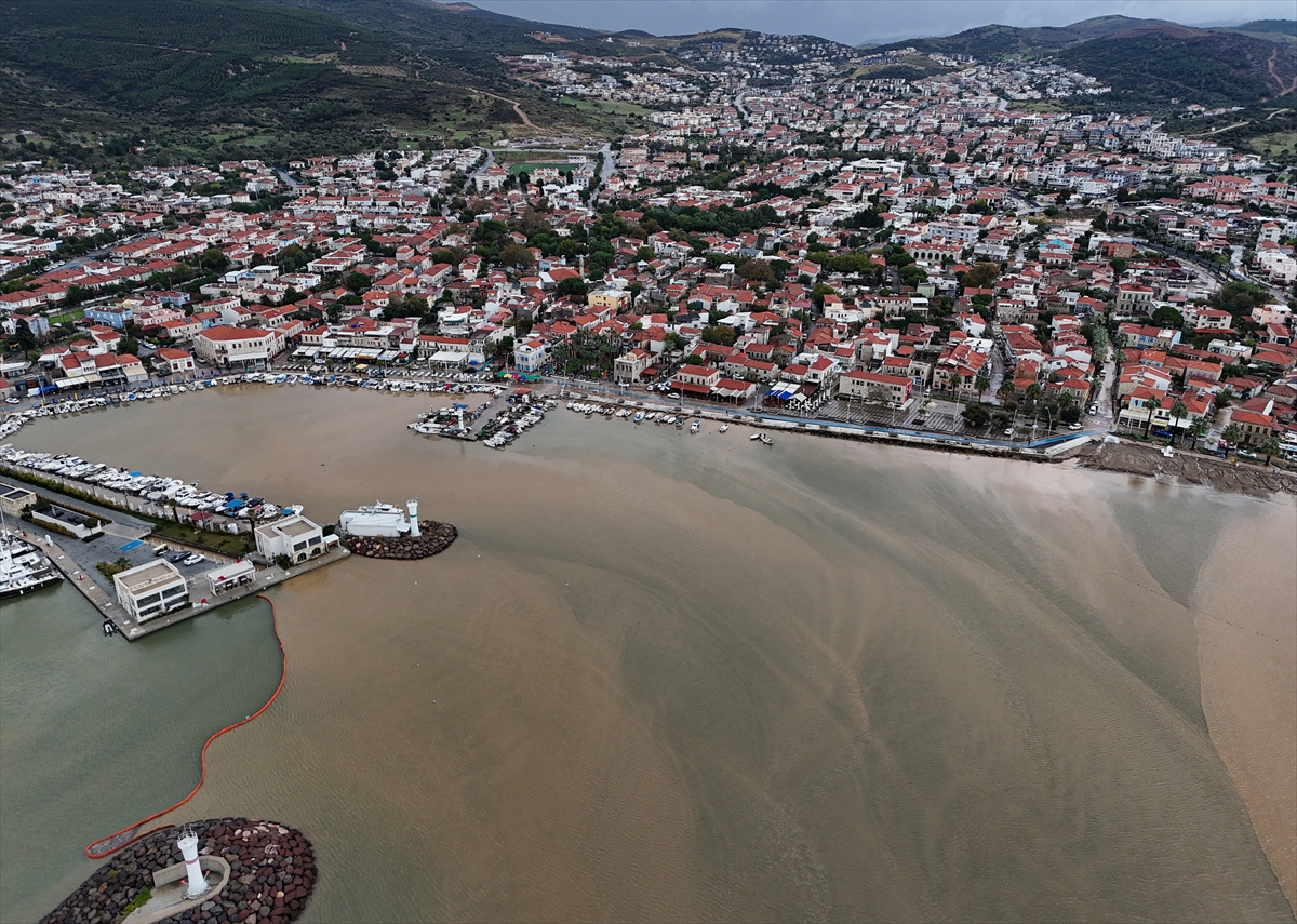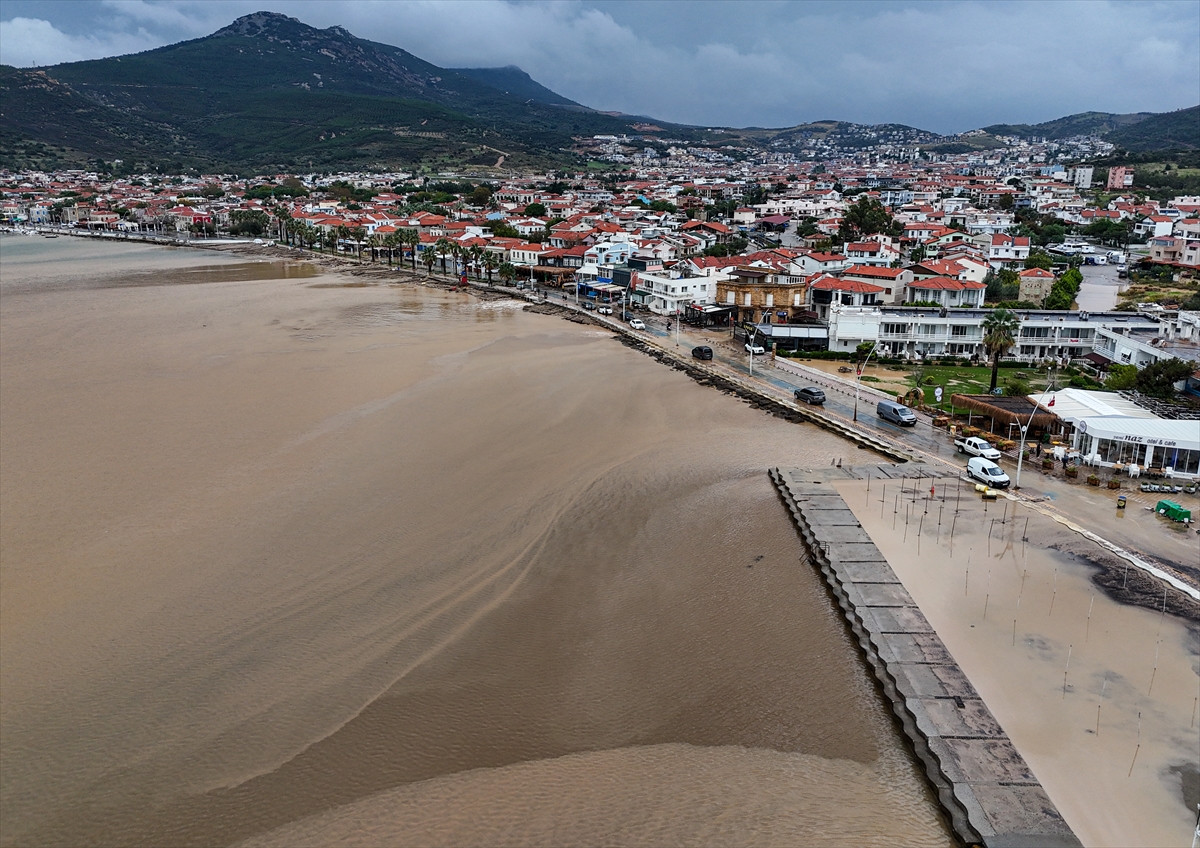 Yağışın ardından Yenifoça sahilinde su taşkını nedeniyle denizin renginin değiştiği gözlendi.