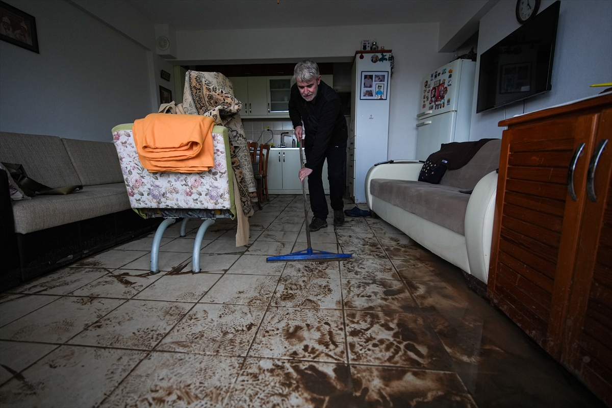 Fevzi Çakmak Mahallesi sakinlerinden Selahattin Tezcan ise kendi imkanlarıyla su basan evini temizlemeye çalıştığını anlattı.