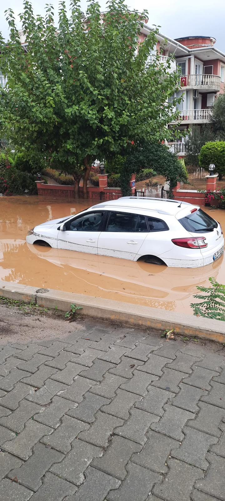 Derenin taşmasıyla çok sayıda aracın zarar gördüğünü ifade eden Tıraş, "Oradan gelen sular olduğu gibi binaya girdi. Binanın içi zaten berbat. İçeri girilmiyor. Park halindeki arabayı aldı, oradan buraya getirdi. 10-15 dakika sürmedi, bir anda oldu." dedi.