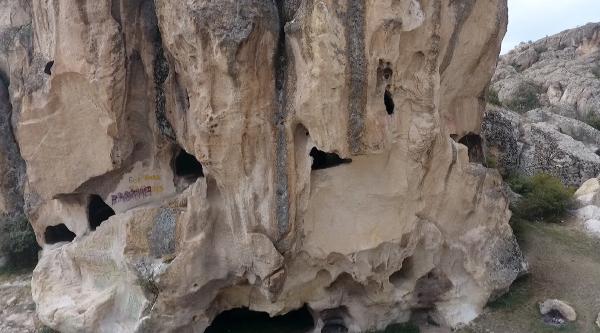 Anadolu'nun önemli mirası Frig Vadisi'nin son halini gören ziyaretçiler, hem üzüldü hem kızdı. Kayaların içine oyulmuş mağaraların duvarlarına, sprey boyayla yazılar yazıldığı görüldü.