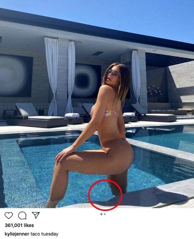 Jenner'ın, geçtiğimiz günlerde lüks evinin bahçesinde çekildiği karelerde kullandığı photoshop takipçilerinin radarına takıldı.