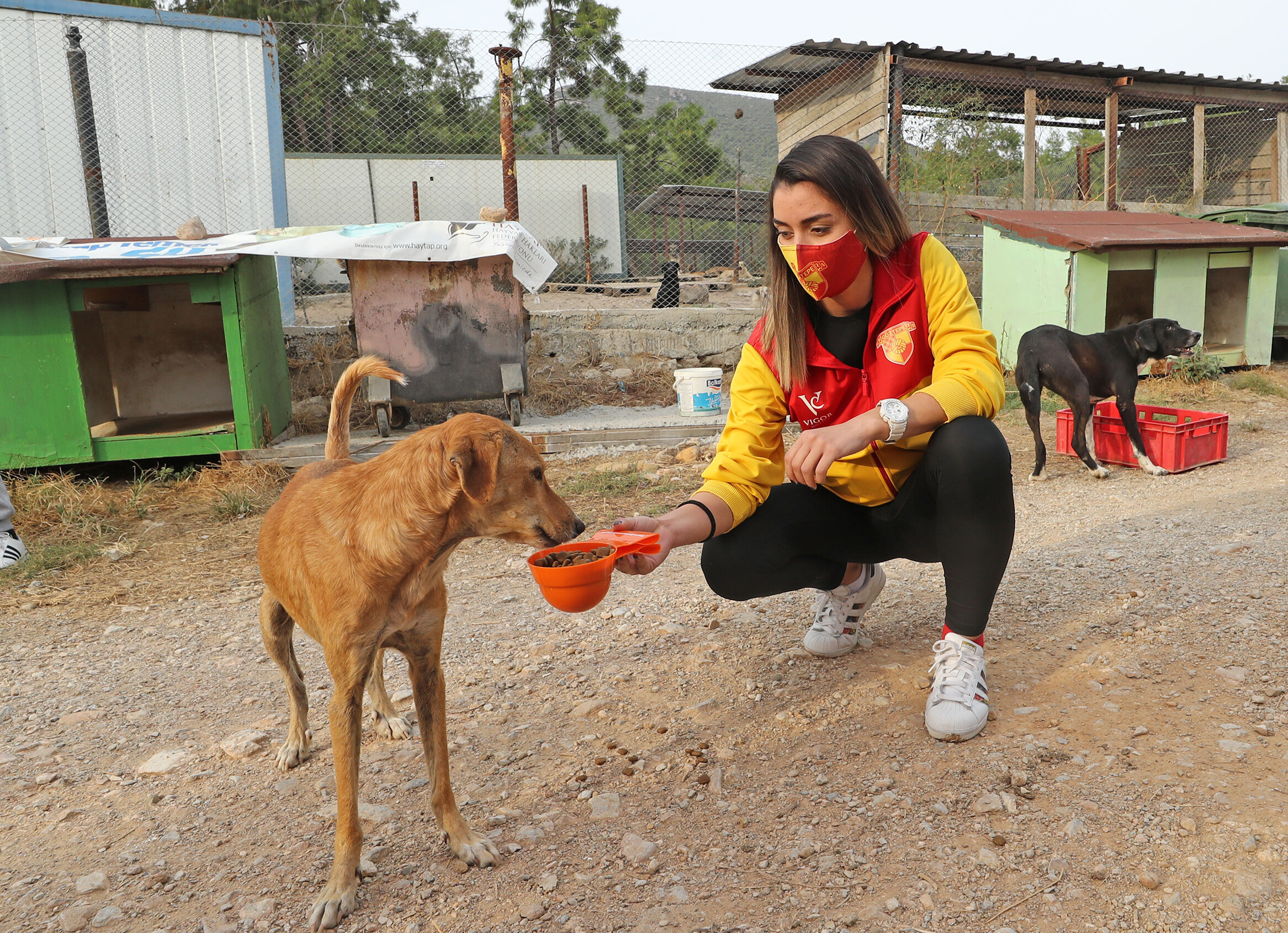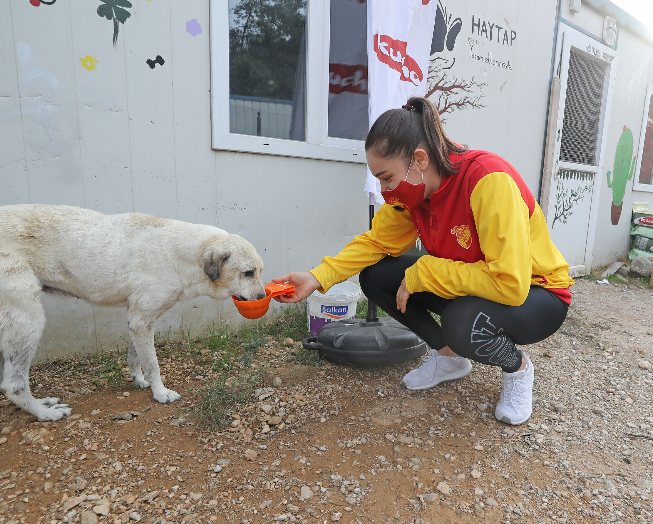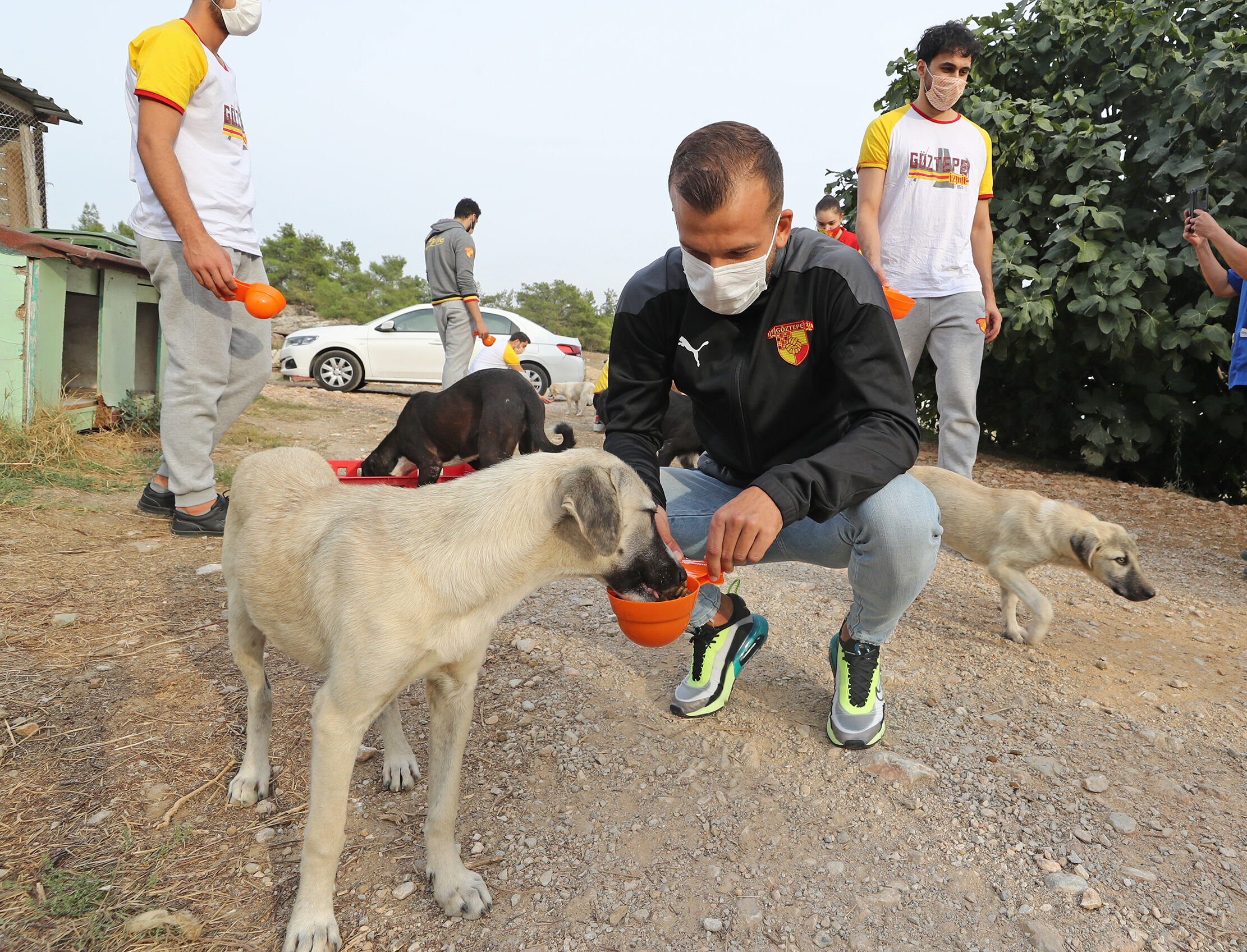 Göztepe Kulübünden yapılan açıklamada, cimnastik, futbol, hentbol, voleybol ve rüzgar sporcuları, Hayvan Hakları Federasyonu (HAYTAP) temsilcileriyle Menderes Şopengazi Hayvan Barınağındaki hayvanlara mama götürdü.