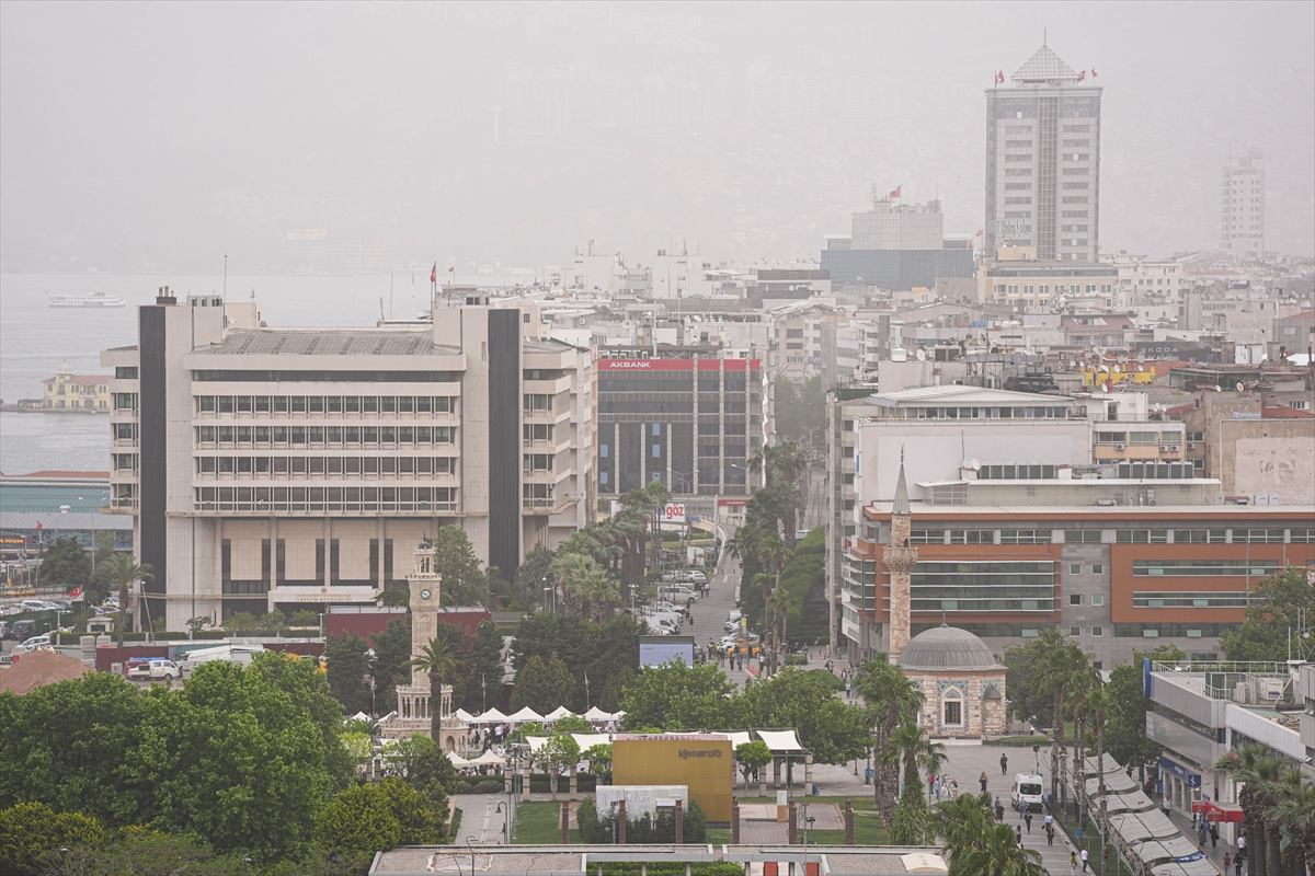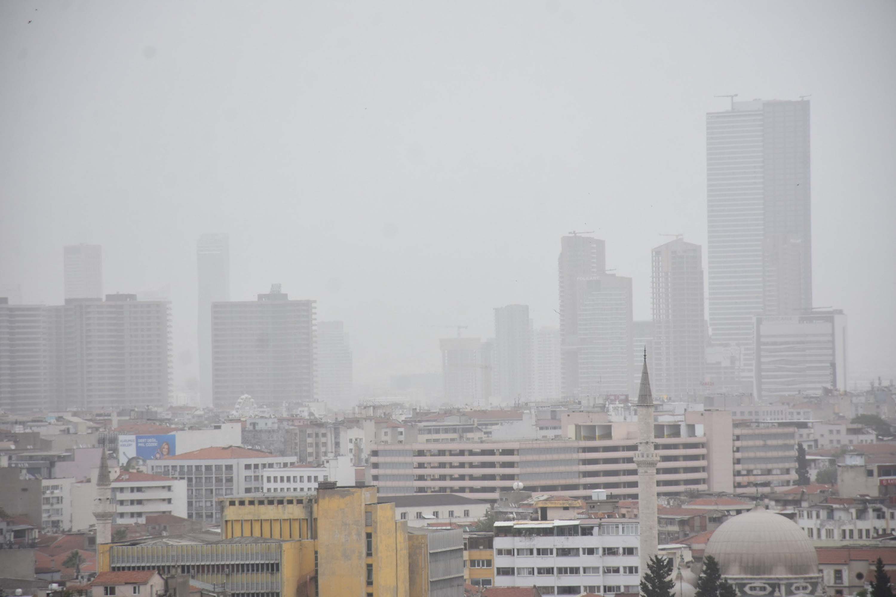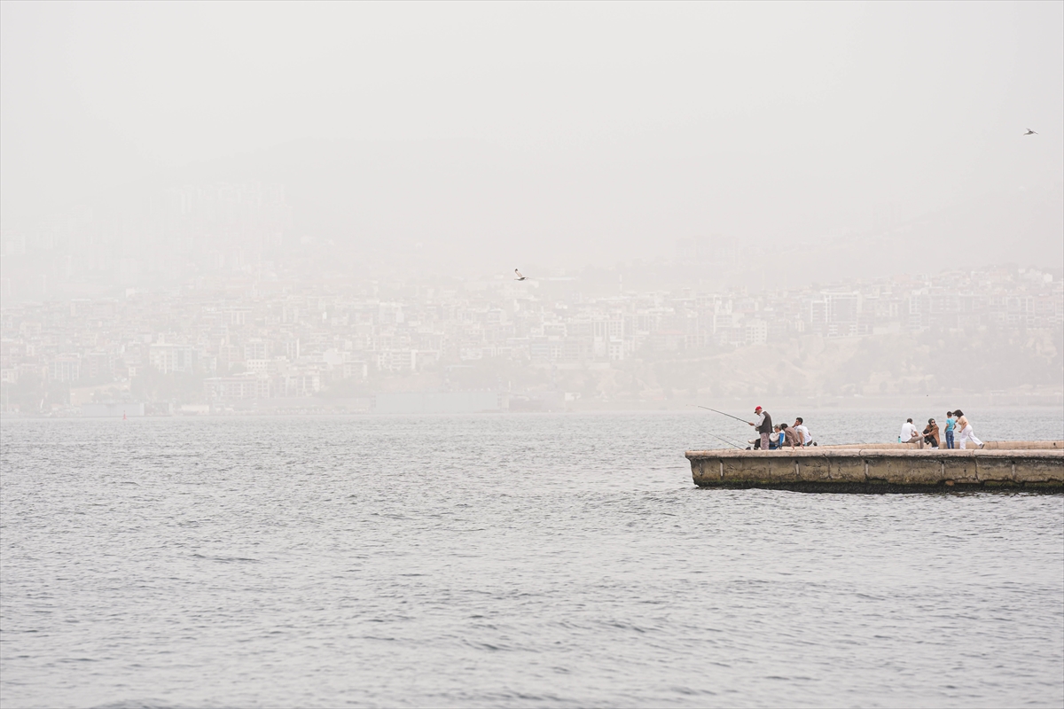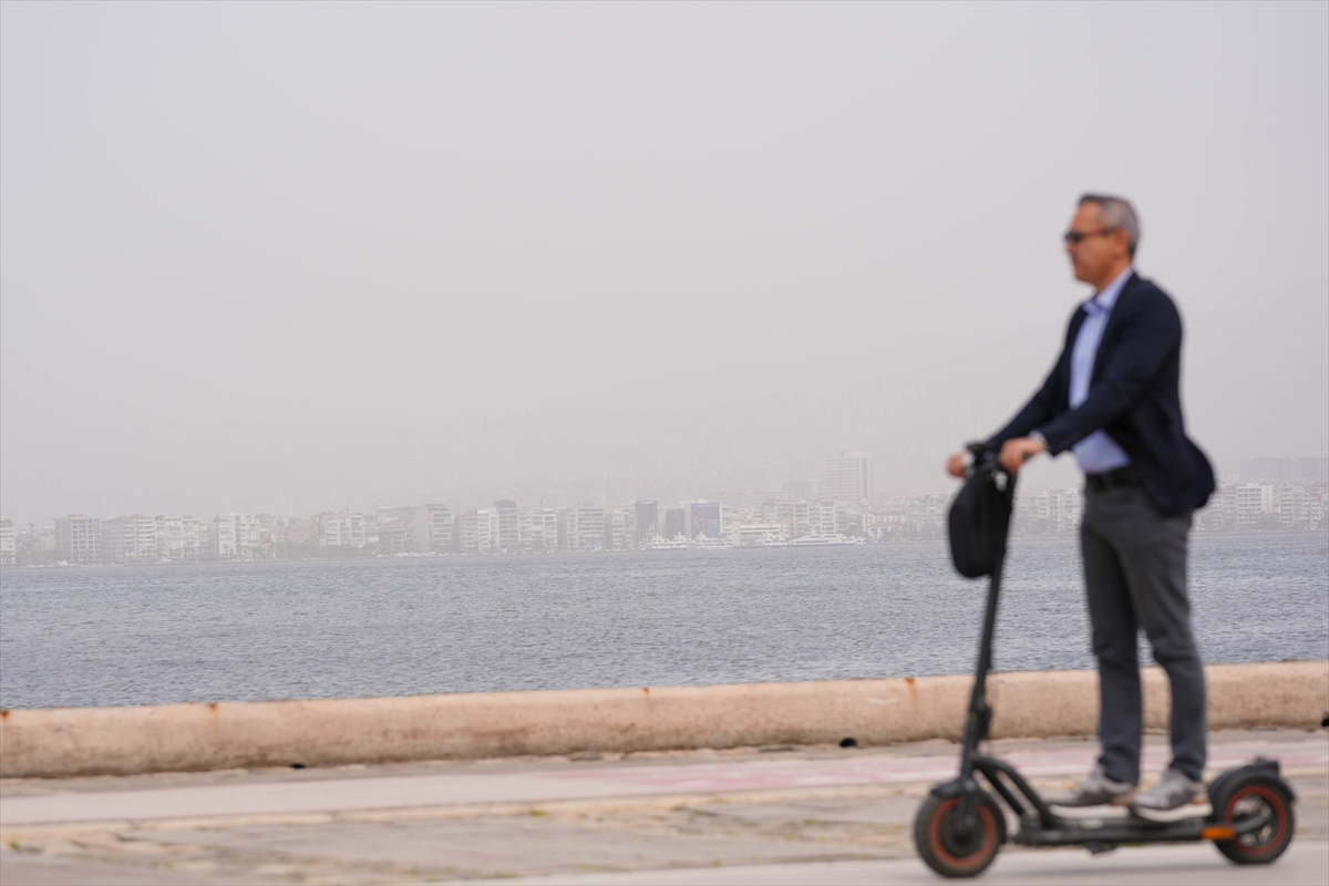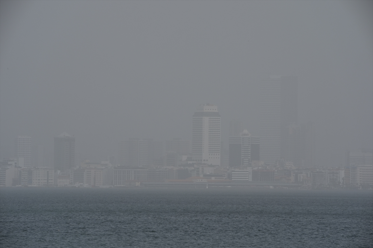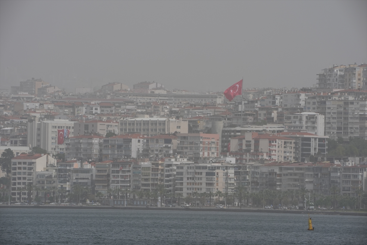 Toz taşınımından etkilenen kentler arasındaki İzmir'de de görüş mesafesi düştü. Bazı vatandaşların maske taktığı görüldü.