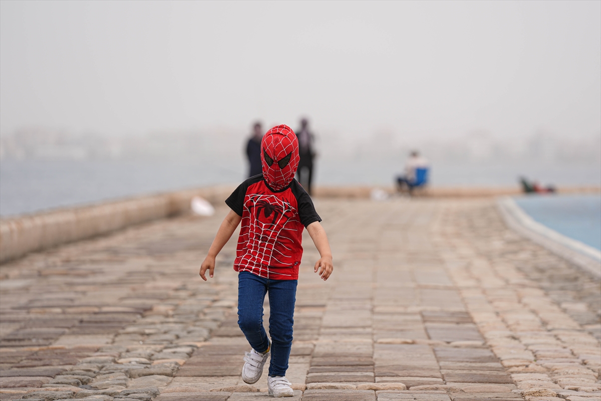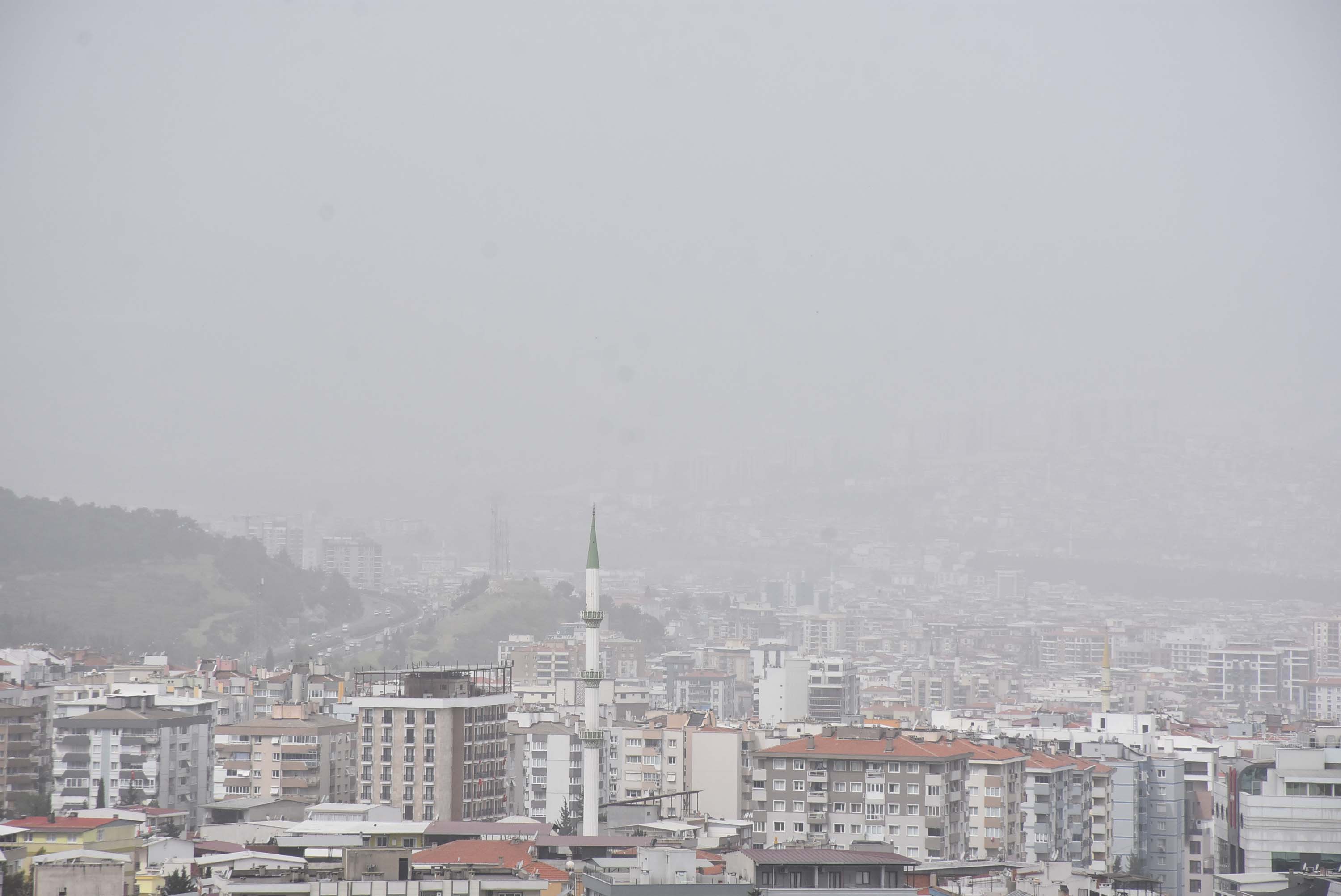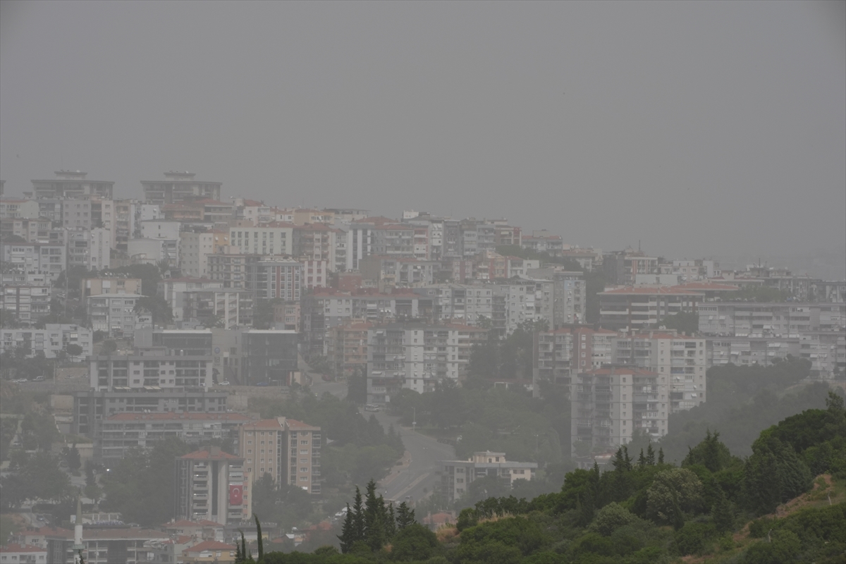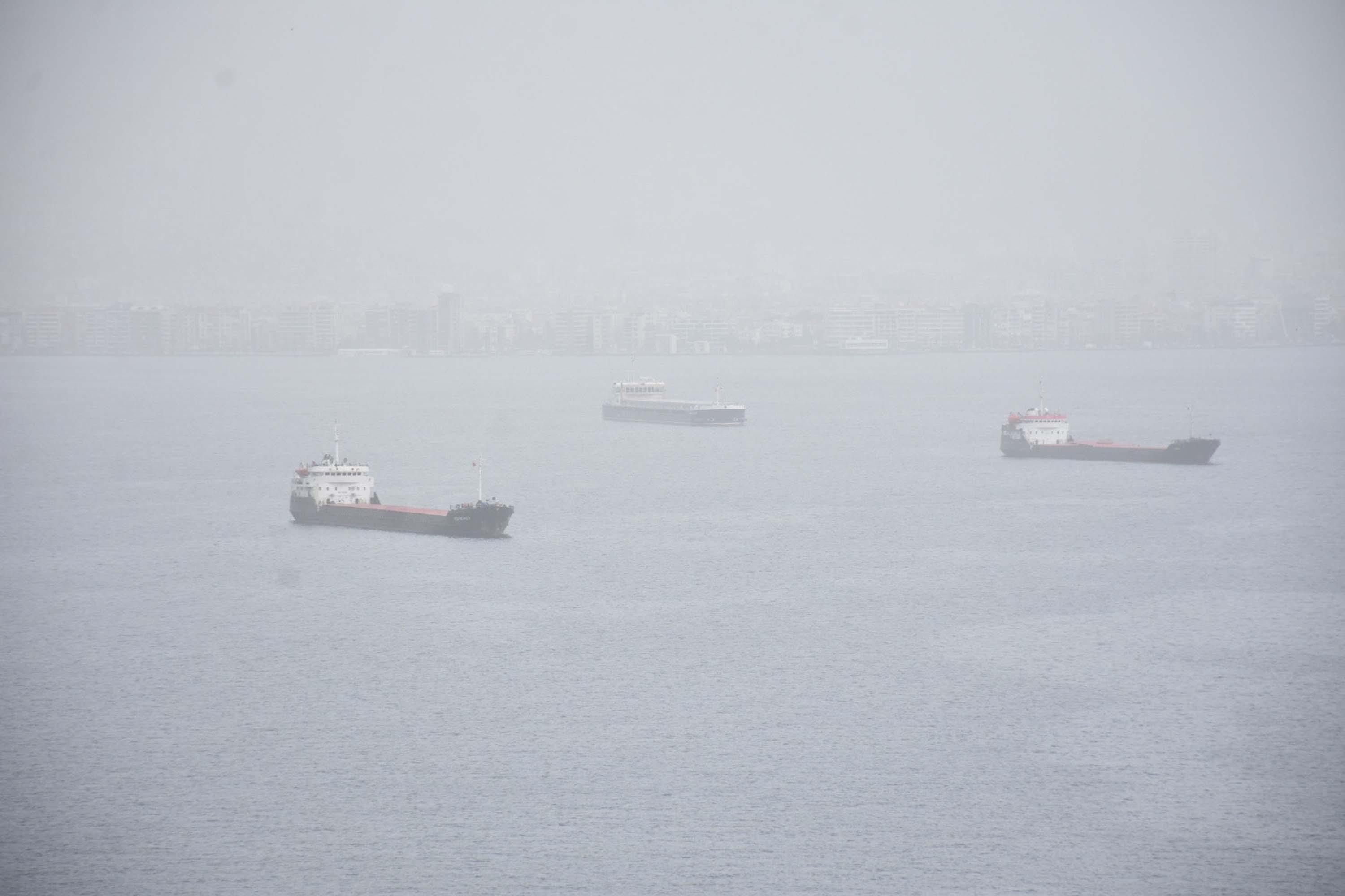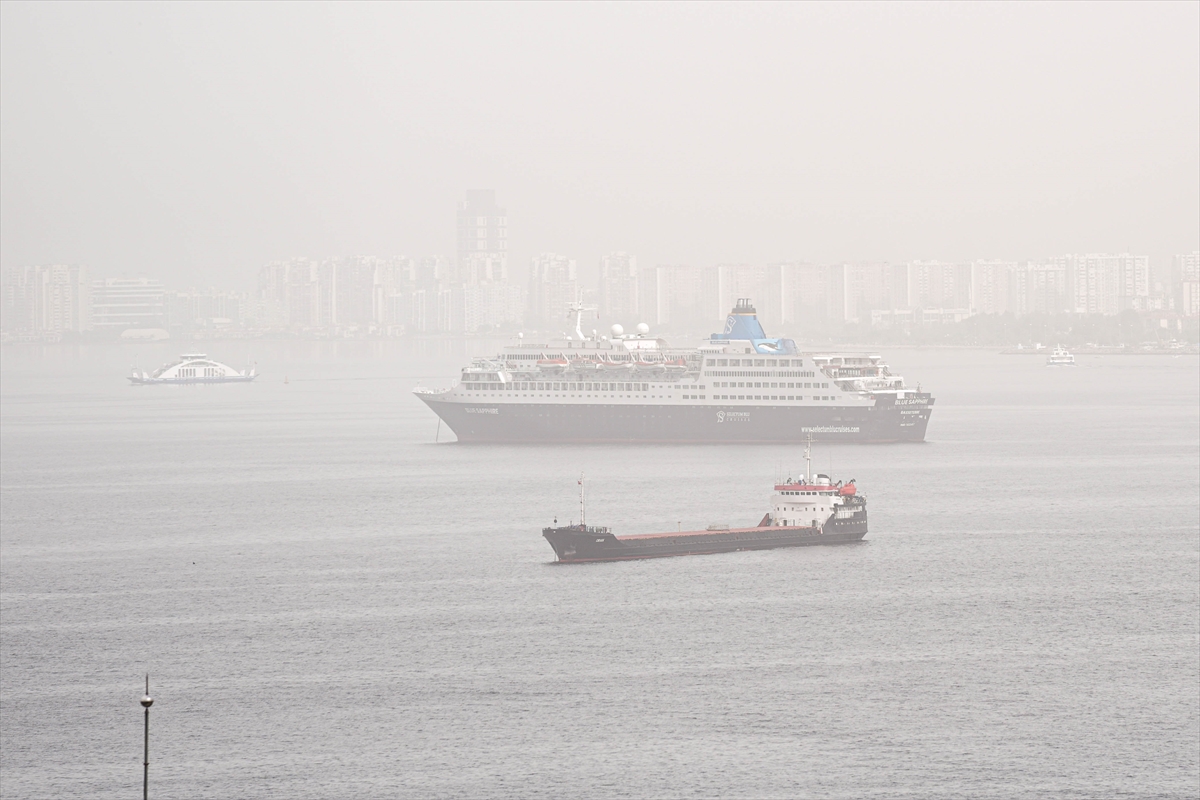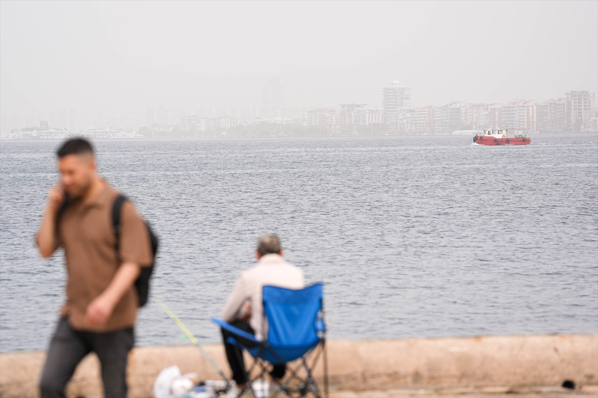 Toz taşınımından etkilenen kentler arasındaki İzmir'de de görüş mesafesi düştü. Bazı vatandaşların maske taktığı görüldü.