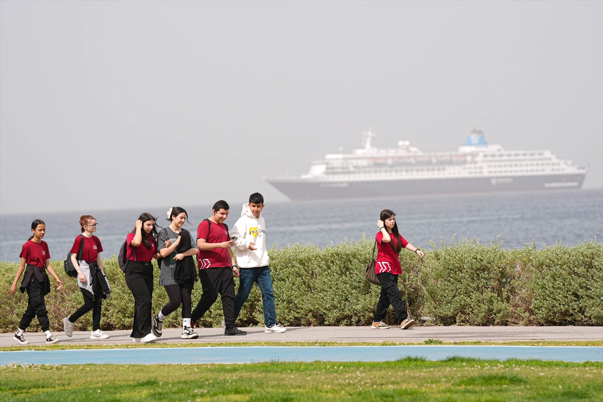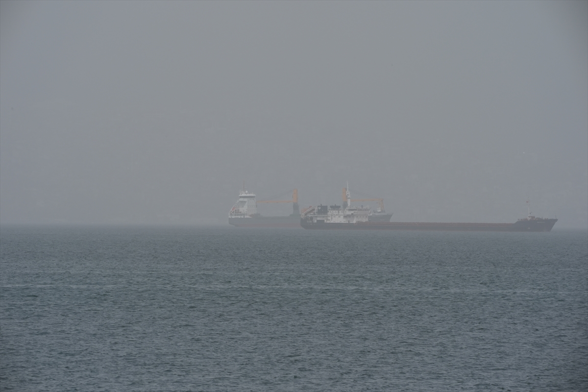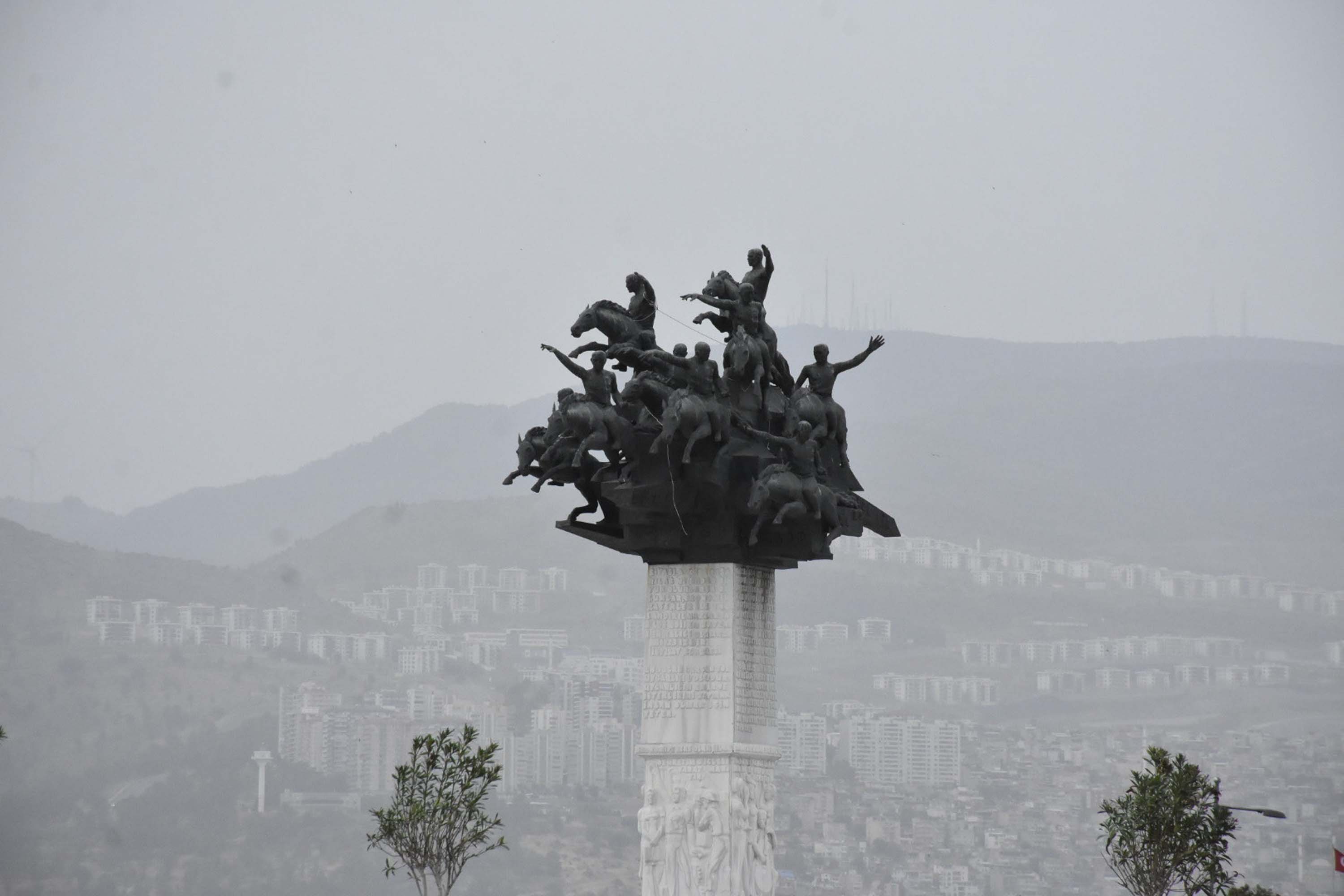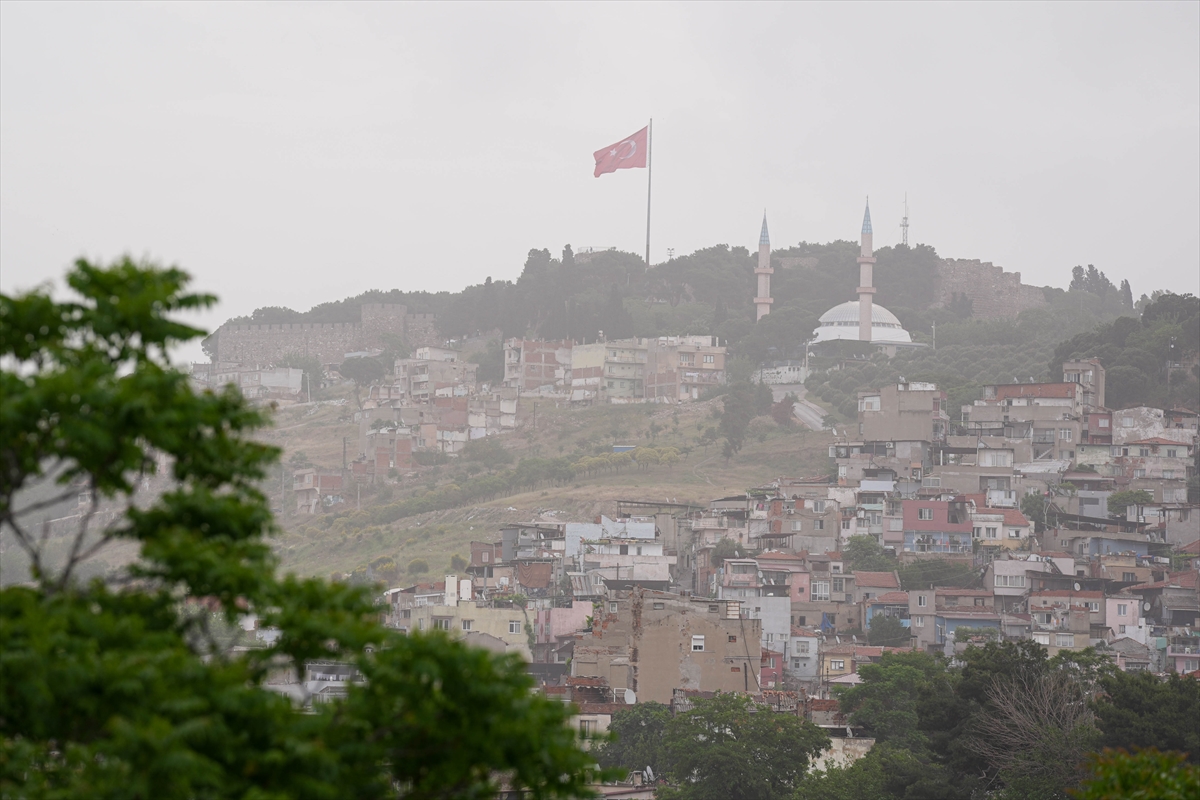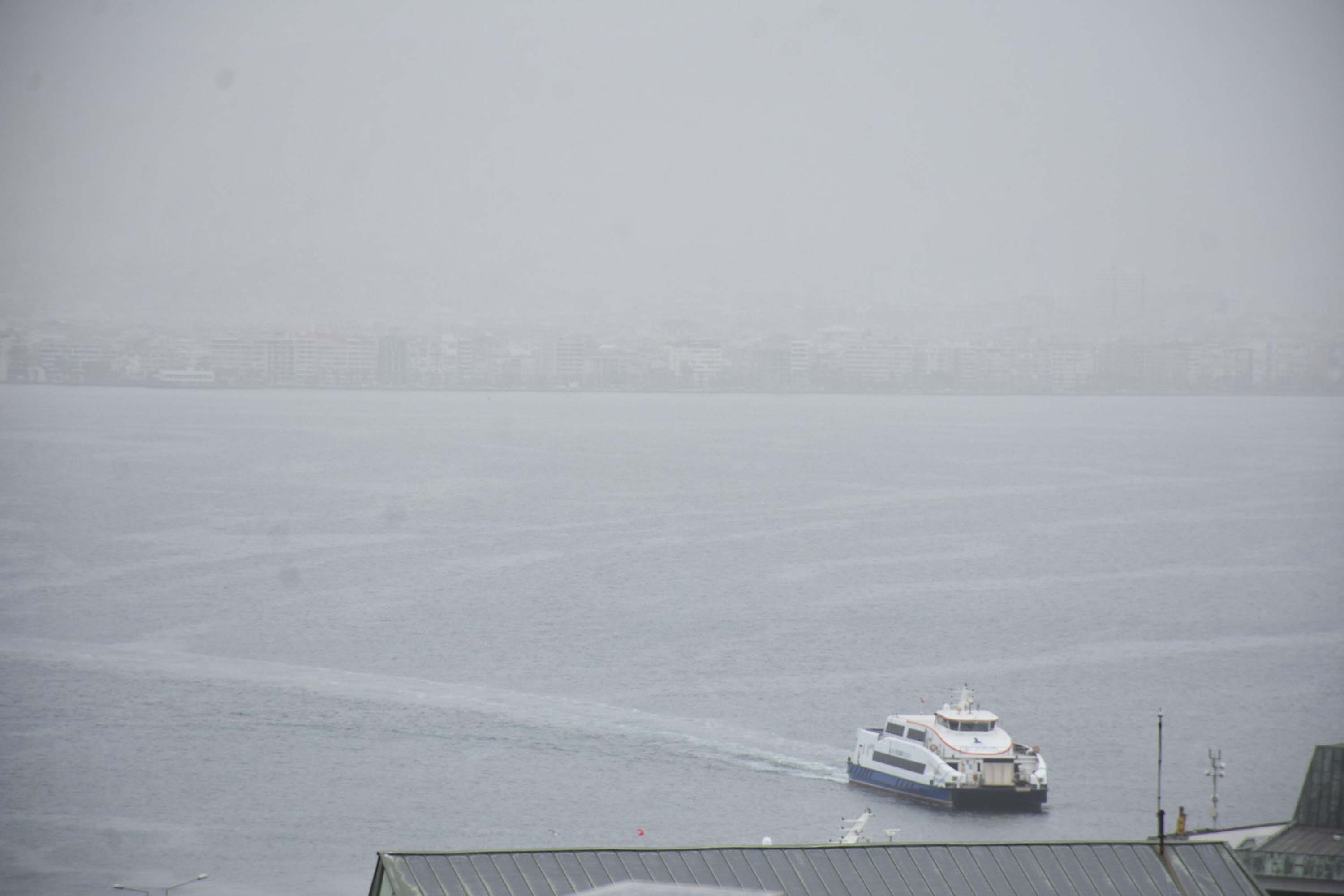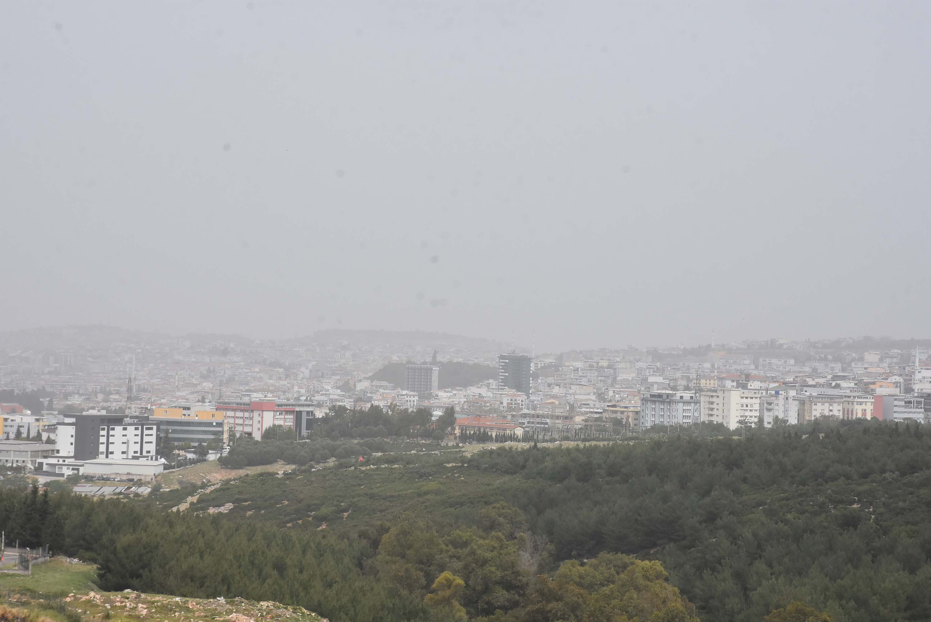Toz taşınımından etkilenen kentler arasındaki İzmir'de de görüş mesafesi düştü. Bazı vatandaşların maske taktığı görüldü.