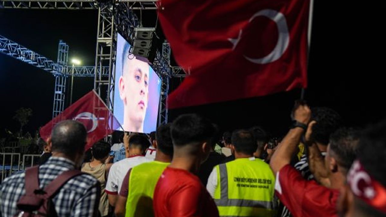 İzmir'de vatandaşlar, Türkiye'nin 2024 Avrupa Şampiyonası (EURO 2024) çeyrek final maçında Hollanda ile yaptığı karşılaşmayı, Konak ilçesindeki Gündoğdu Meydanı'nda kurulan dev ekrandan izledi.