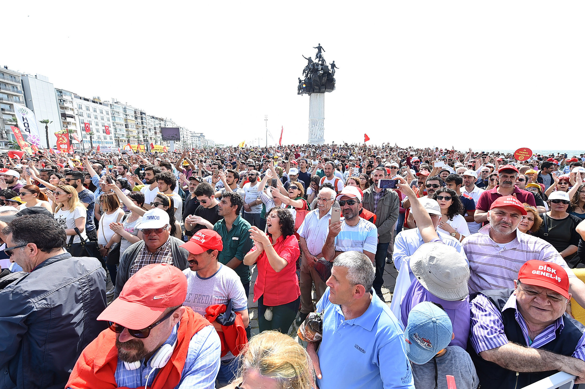 Türkiye’de ve pek çok ülkede işçi sınıfı tarafından kutlanan 1 Mayıs Emek ve Dayanışma Günü için İzmir’deki adres her seneki gibi yine Gündoğdu Meydanı oldu.