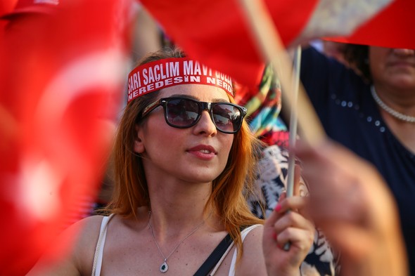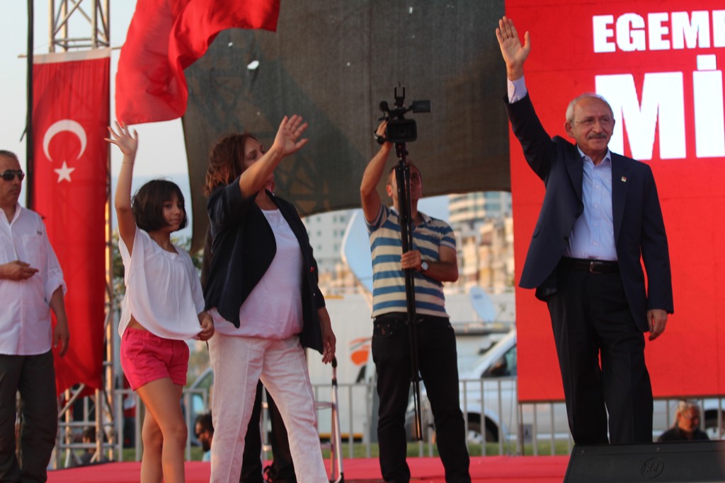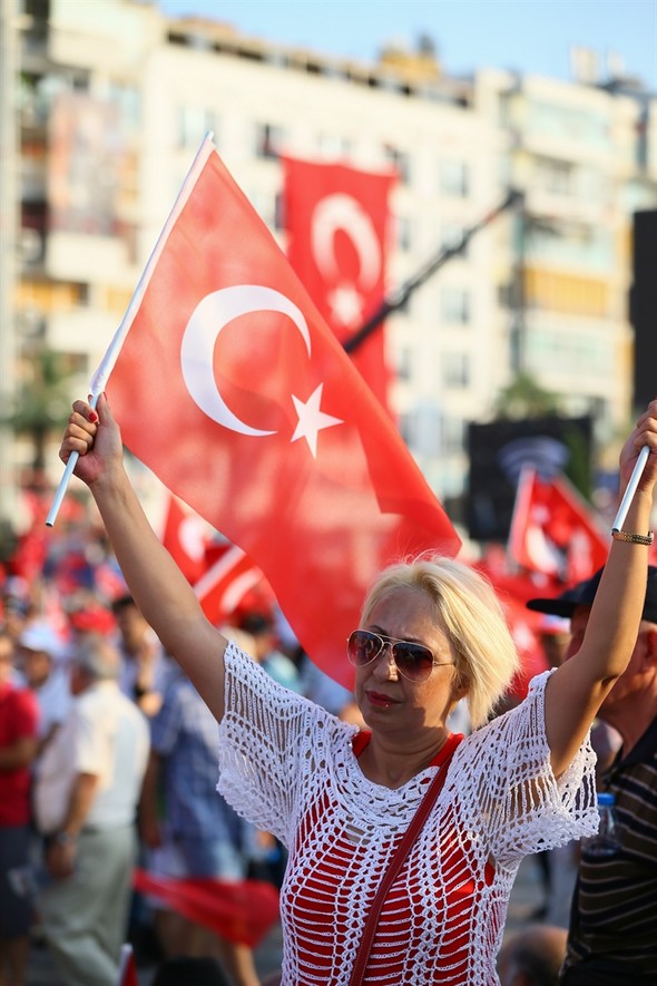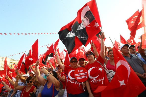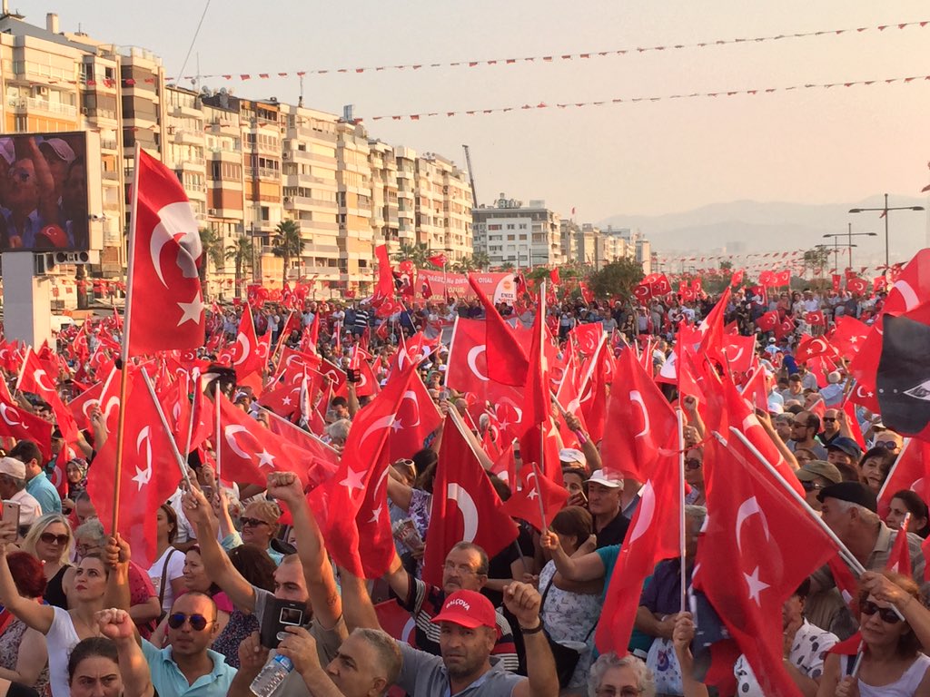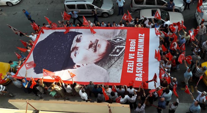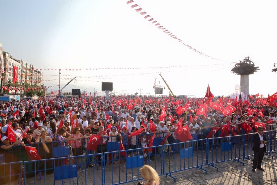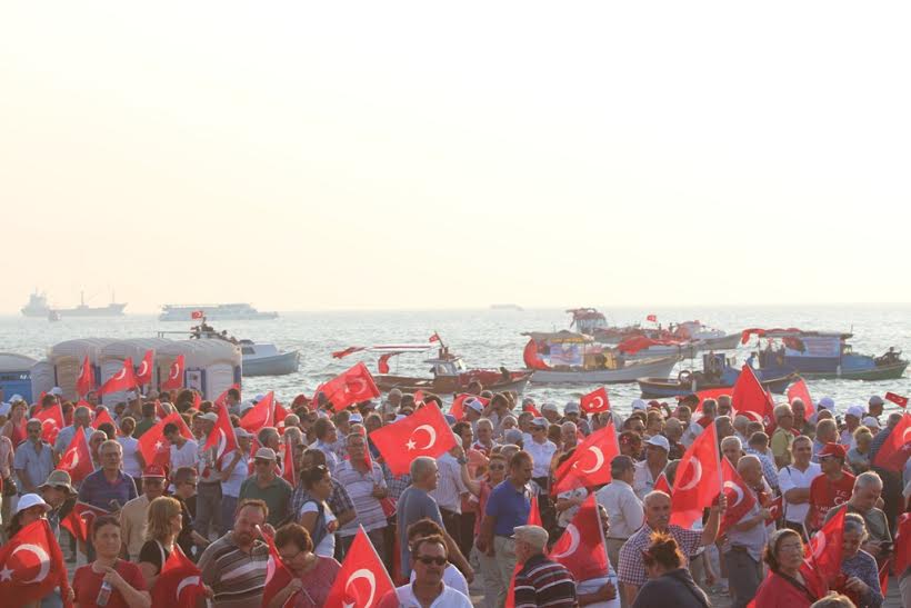 CHP'nin düzenlediği mitingde Türk Bayrakları darbelere karşı Cumhuriyet ve demokrasi için dalgalandı.