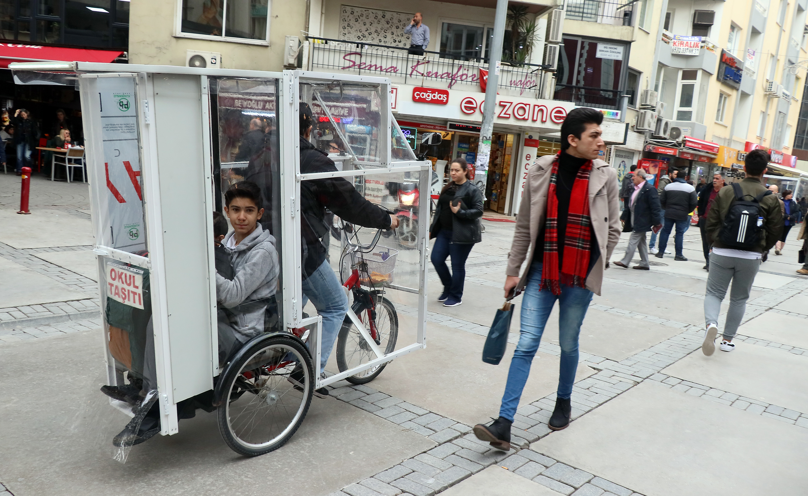 "Daha sonra bisikletin üzerini kapatıp okul servisi yapmaya karar verdim. Çocukları yağmur ve soğuktan korumak ve servis ücretinden tasarruf etmek amacıyla çalışmalara başladım. Çizimi yaptıktan sonra yaklaşık 3 ayda tamamladım. Çocuklarım kışın üşümedi, ıslanmadı. Aylık 150 lira servis ücreti istemişlerdi, böylece ondan da tasarruf etmiş oldum."