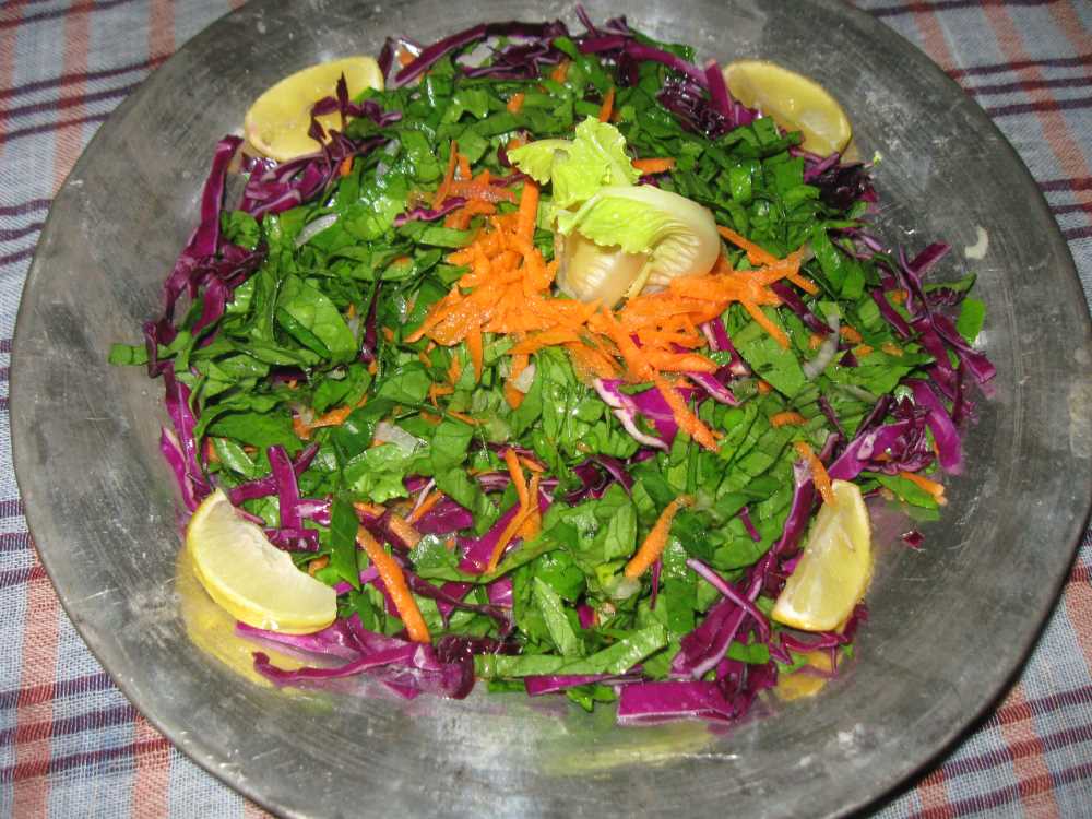 Marul ayıklanarak geniş bir kapta sirkeli suda beş veya on dakika kadar bekletilerek yıkanır. Soğan incecik doğranıp tuzla ovularak yıkanır ve suyu süzdürülür. Havuçlar soyularak geniş bir kase içine rendelenir. Üzerine marul ve lahana doğranarak diğer malzemeler de ilave edilip harmanlanır. Zeytinyağı, tuz ve bolca limon suyu eklenerek karıştırılır, servis yapılır.