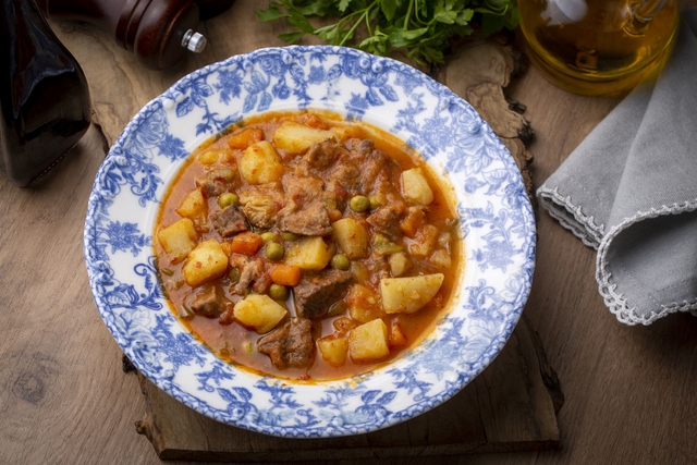 Etler ve sebzeler yumuşayana kadar pişirin (Düdüklü tencerede yapacaksanız süre kısalacaktır). Ocaktan almaya yakın tuzunu ve baharatlarını ekleyin. Suyu hafif kıvamlı olmalı, çok sulu kalmamalı.