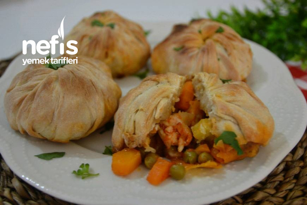 Yufkanın kenarlarından parçalar kopartarak çukur olan kısma bir kat daha serin.