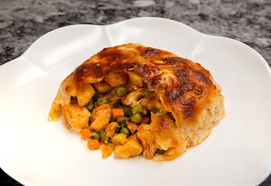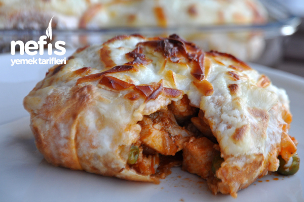Kaseye tavuklu harçtan koyarak, kasenin kenarlarından sarkan yufkaları üzerine kapatın.