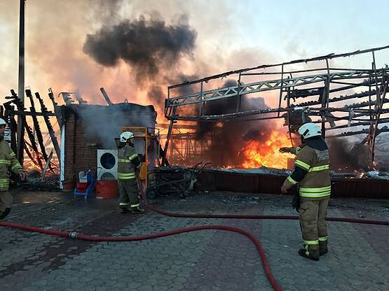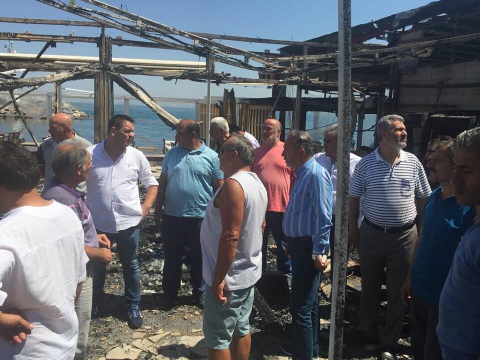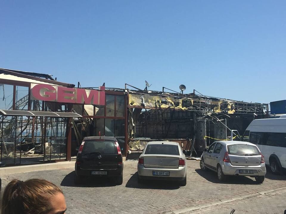 Yangında Güzelbahçe Belediye Meclis üyesi Alpay Kandemir’e ait ‘Gemi’ isimli restoran ile hemen yanında bulunan ‘Reis’ isimli restoran büyük zarar gördü.