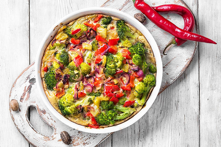 Uzmanlar diyet yapanlar için çok tok tutan ve çok bol bir protein kaynağı olan yumurtanın bol bol tüketilmesini tavsiye ediyor. Yumurtayı kahvaltı dışındaki öğünlerde tüketmenin en kolay ve lezzetli yolu bir tür İtalyan omleti olan frittata. Bu tarifimizde frittata'yı sebzelerle zenginleştirdik. Böylece kalorisini çok fazla artırmadan tadını ve besleyiciliğini artırmış olduk. Mutlaka denemelisiniz! İşte sebzeli frittata tarifi...