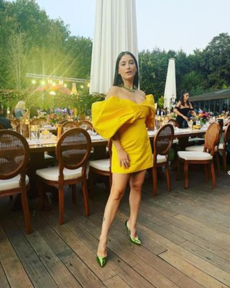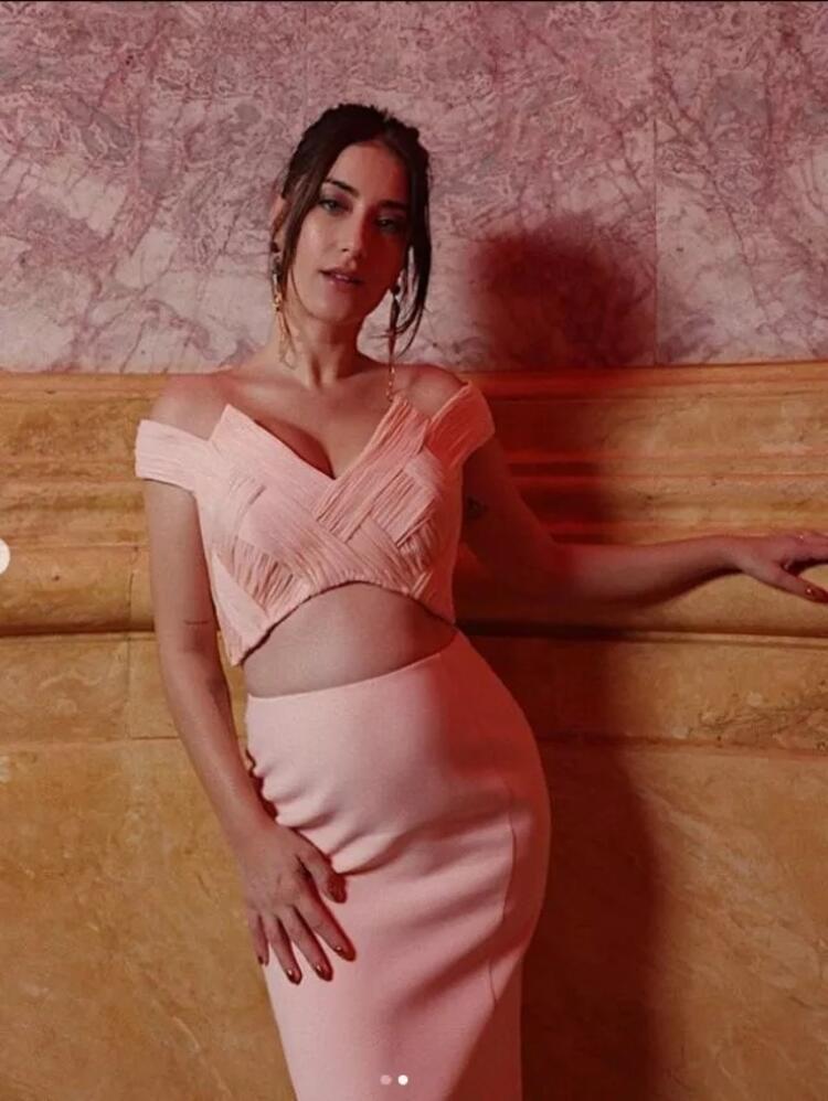 Ünlü oyuncu geçtiğimiz günlerde başka bir davette poz vermiş ve "Kızı düğün düğün gezdiriyorum" notuyla takipçilerinden beğeni almıştı. Şimdilerde ikinci çocuğuna hamile olan ve çocuğunun ismini "Leyla" koyacağını da açıklayan isim bu kez pembe elbisesiyle dikkat çekti.