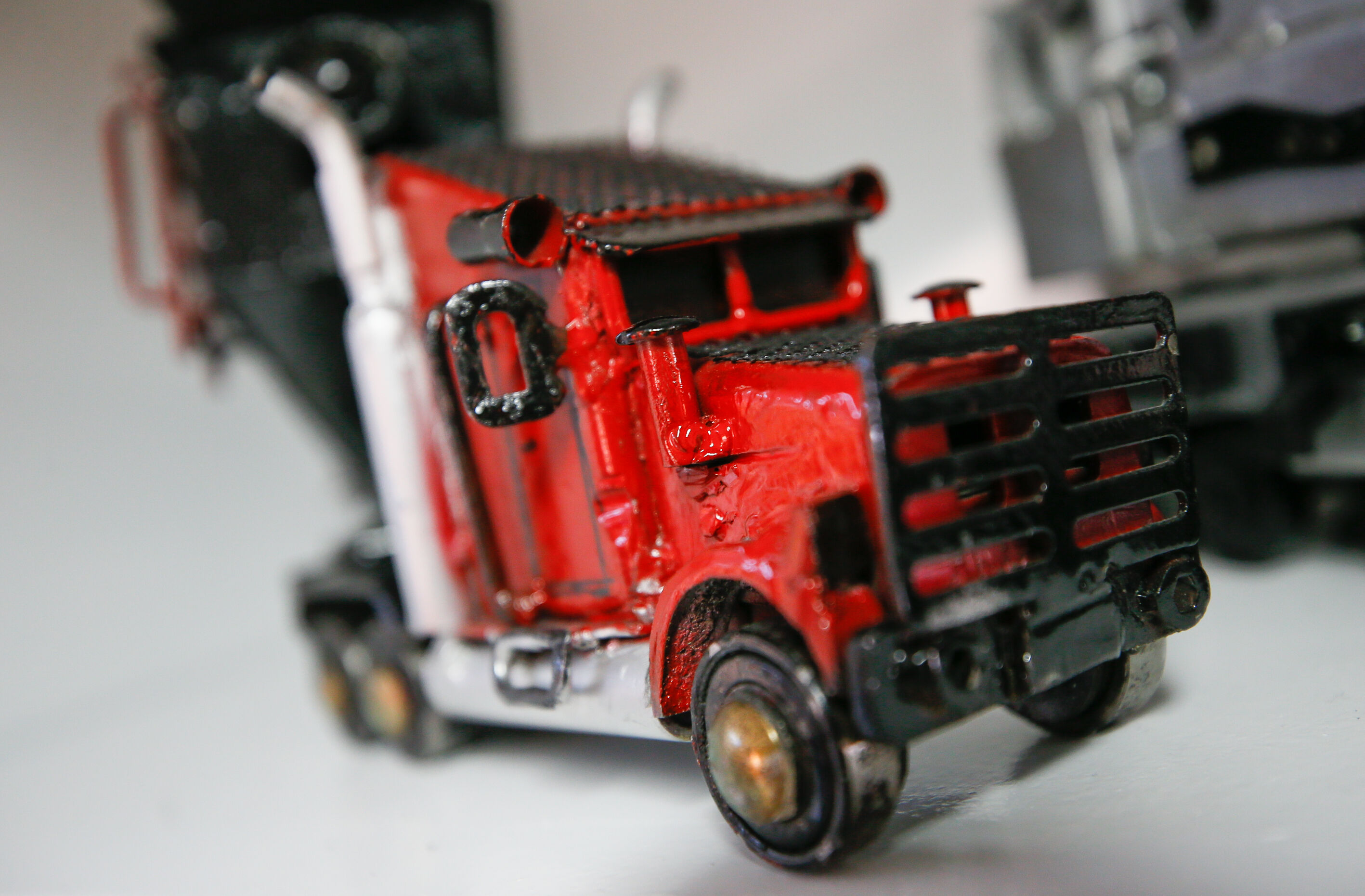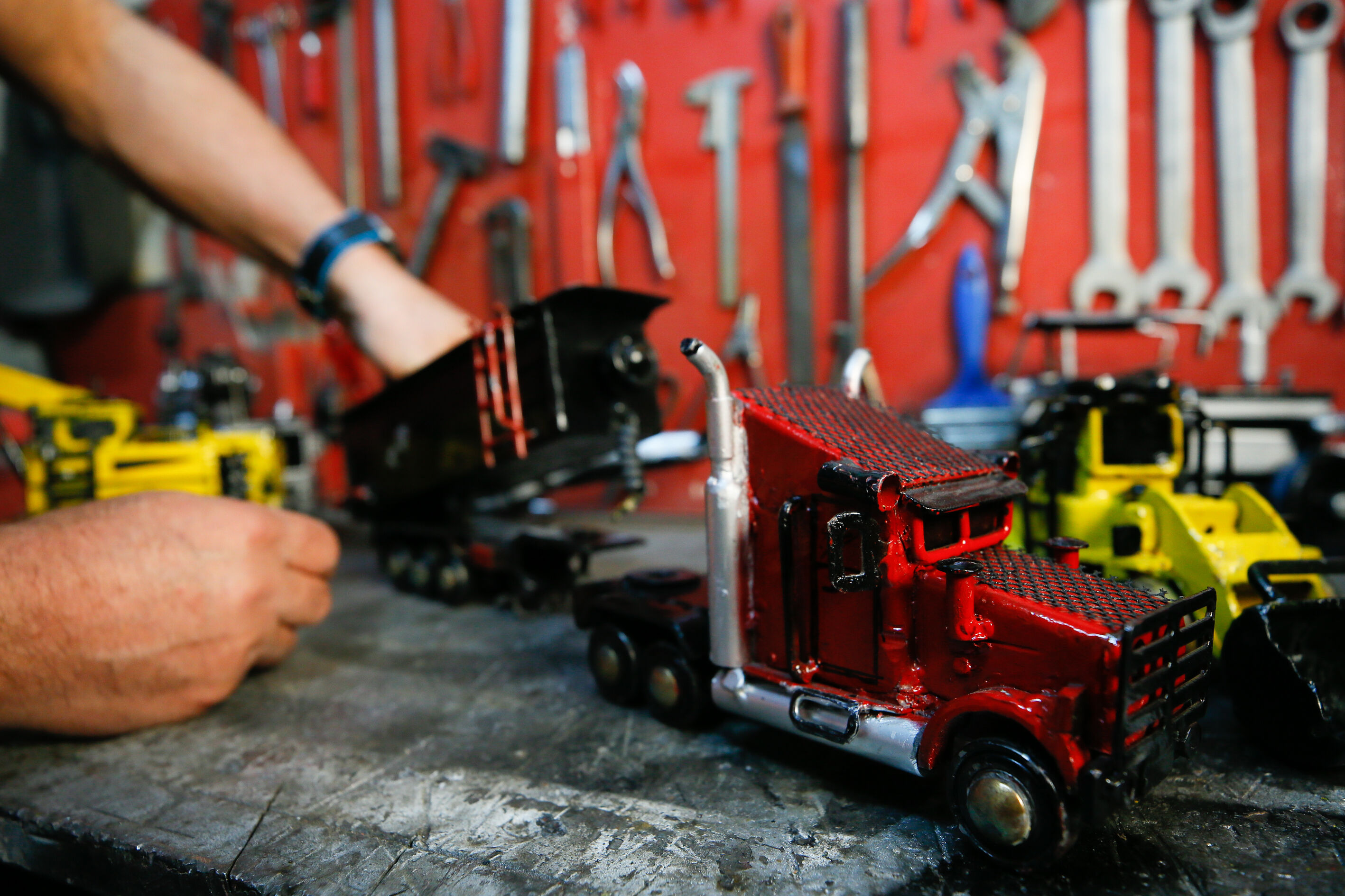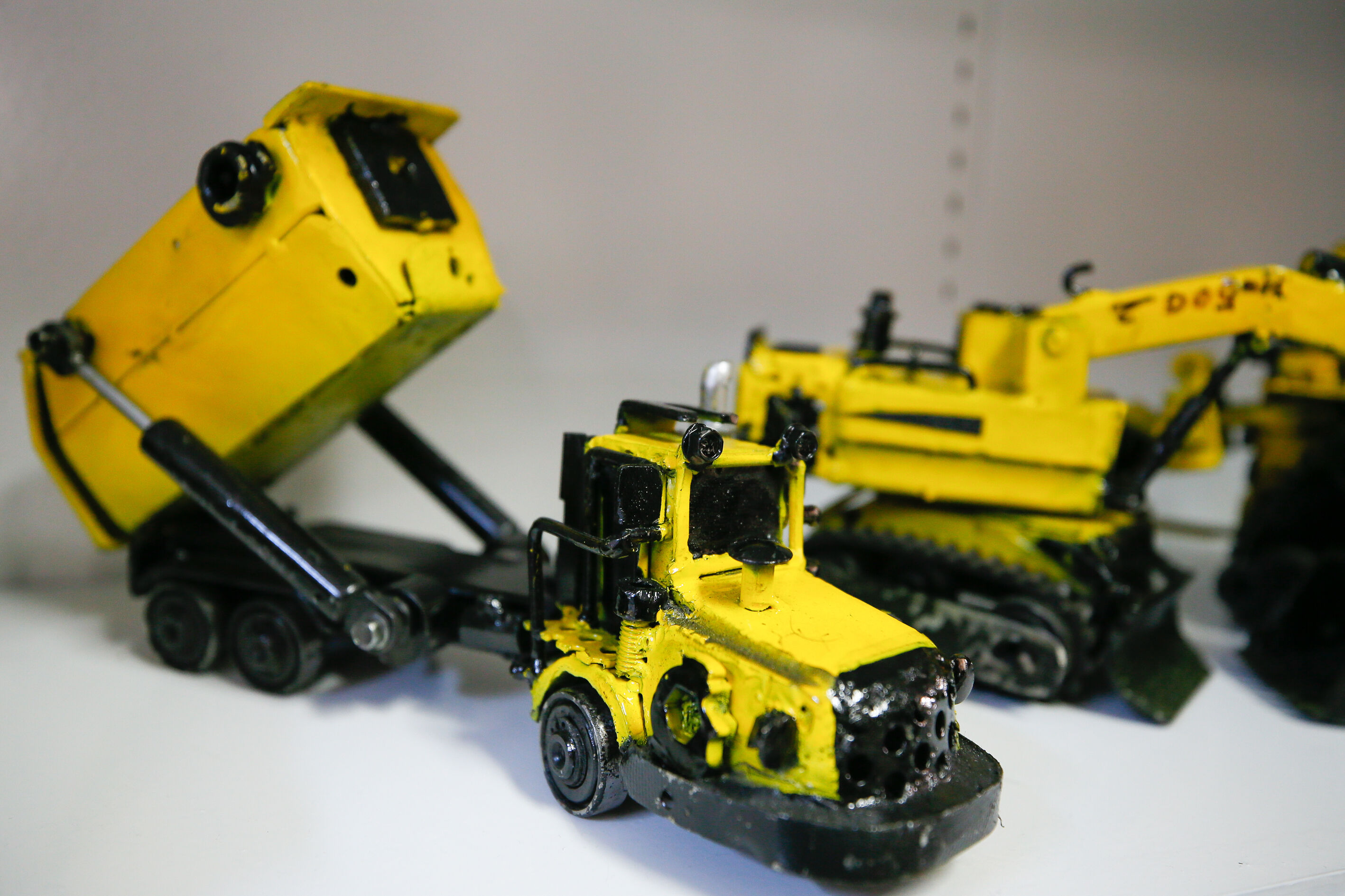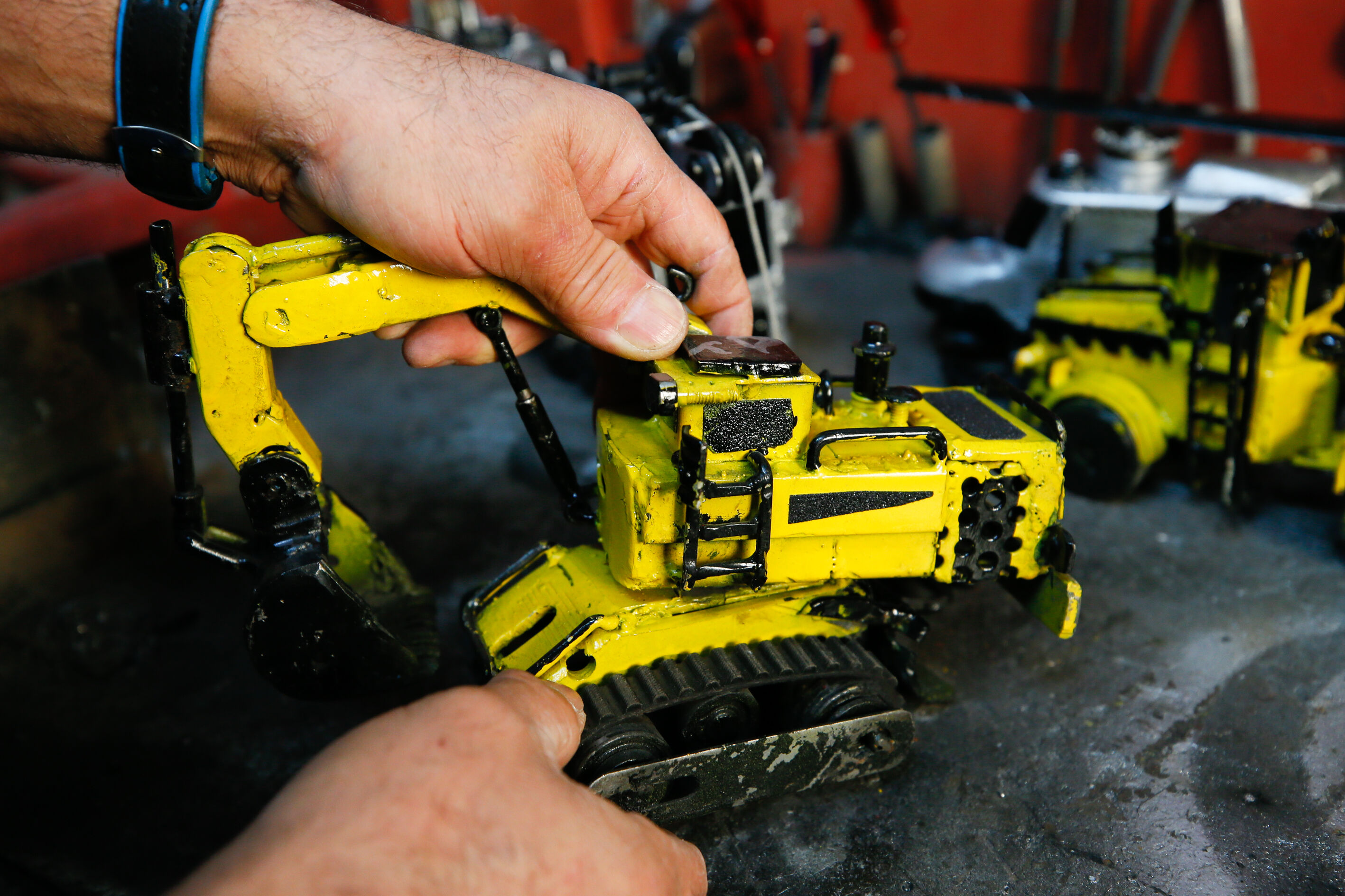 "Önce yapmak istediğim iş makinasının resmini kafamda çiziyorum. En önemli kısmı o zaman. Ardından hurdalığa gidip yapacağım eser için parça sökmeye başlıyorum. Hurdalığımız çok zengin, istediğiniz tüm parçaları bulabiliyorsunuz. Bazen bulduğum parçalara şekil veriyorum, bazen de kaynakla onlara ilave parçalar yapıyorum. Yaptığım oyuncakları satın almak isteyen çok talipli var ama ben onları satmaya kıyamıyorum. Küçük oğlum atölyeye geldiğinde oynamasına izin veriyorum. Bazen eve götürüyor, ben bir hafta sonra yine buraya getiriyorum. Minyatür oyuncaklarımı özleyince haftanın 3 günü onları başhekimlik katında seyretmeye gidiyorum."