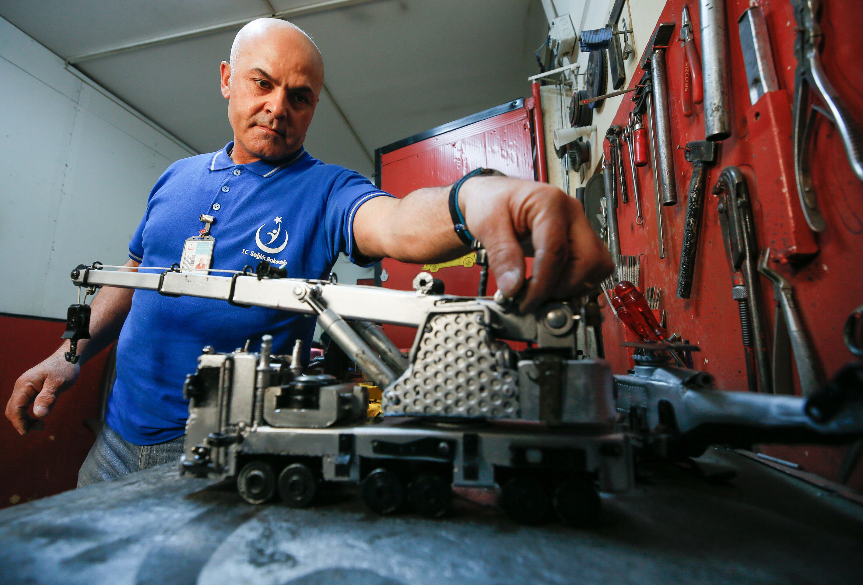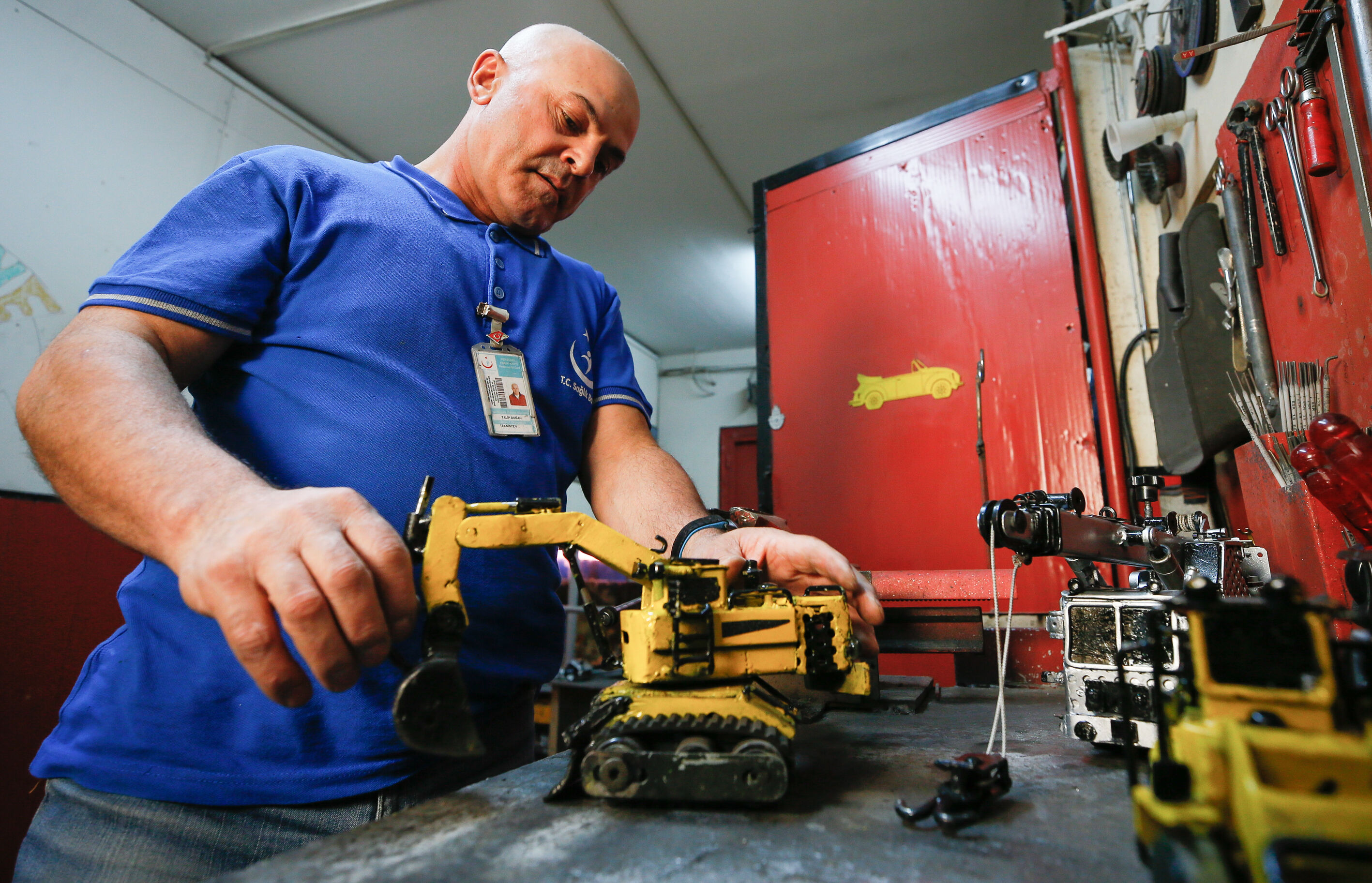 Daha büyük ve uğraş isteyen minyatür iş makinaları yapmaya da karar veren Doğan, mesaisinden arta kalan zamanını hastanenin zemin katındaki 10 metrekarelik atölyesinde geçirmeye başladı.