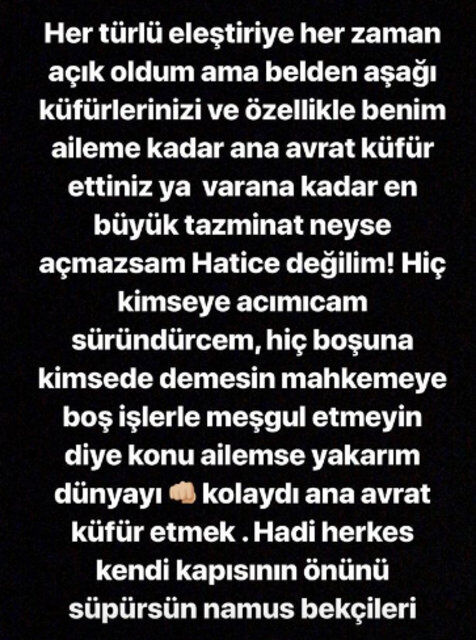 Hatice ise kendisine gelen mesajlara isyan etti ve şunları söyledi: