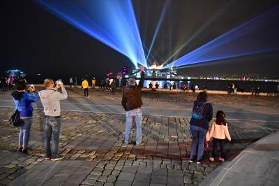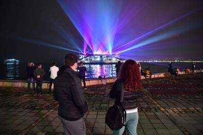 Karantina, Göztepe, Konak, Cumhuriyet Meydanı, Gündoğdu Meydanı, Bayraklı, Alaybey, Karşıyaka’dan geçerek Bostanlı’ya ulaşan vapurdaki lazer gösterisi tüm Körfez’den izlendi.