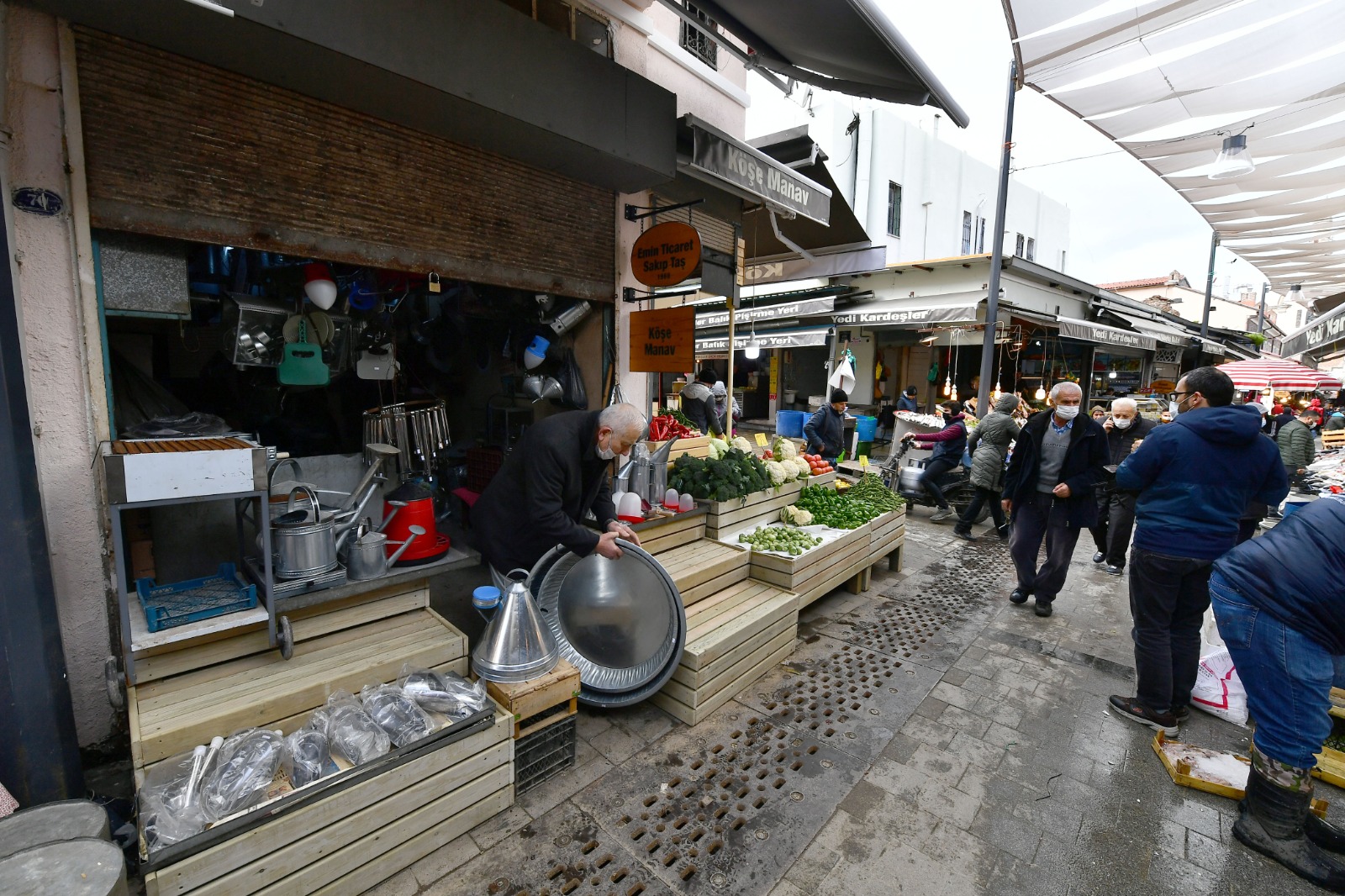 Her gün binlerce İzmirlinin alışveriş yaptığı ticari bölgenin bozulan zemini taş döşenerek düzeltildi. Sokaktaki üst örtü çalışmaları ise büyük ölçüde tamamlandı.