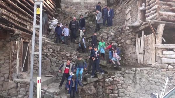 Öğrencilerin 384 basamaklı merdiveni kullanarak okula geldiğini belirten öğretmen Muhittin Polat da "Okulumuza arabayla da ulaşmak mümkün ama servis yok. O nedenle öğrenciler merdiveni kullanmak zorunda kalıyor" diye konuştu. (DHA)
