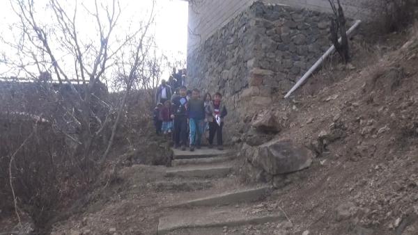 12 öğretmenin görev yaptığı okulda okuyan 94 öğrenci, dağ yamacına kurulan okula ulaşmak için yaklaşık 20 dakikalık merdiven yolculuğu yapıyor.