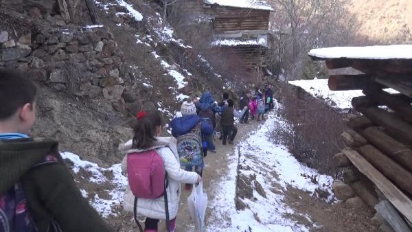 Artvin'in Yusufeli ilçesine bağlı Dereiçi köyündeki Dereiçi İlkokulu'nda eğitim gören öğrenciler, okula ulaşmak için zorlu bir yolculuk yapıyor. Öğrenciler sırtlarında çantalarıyla 384 basamaklı merdiveni çıkıp, okula ulaşıyor.
