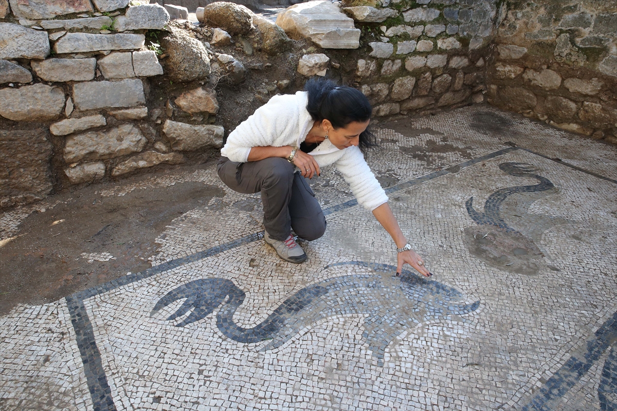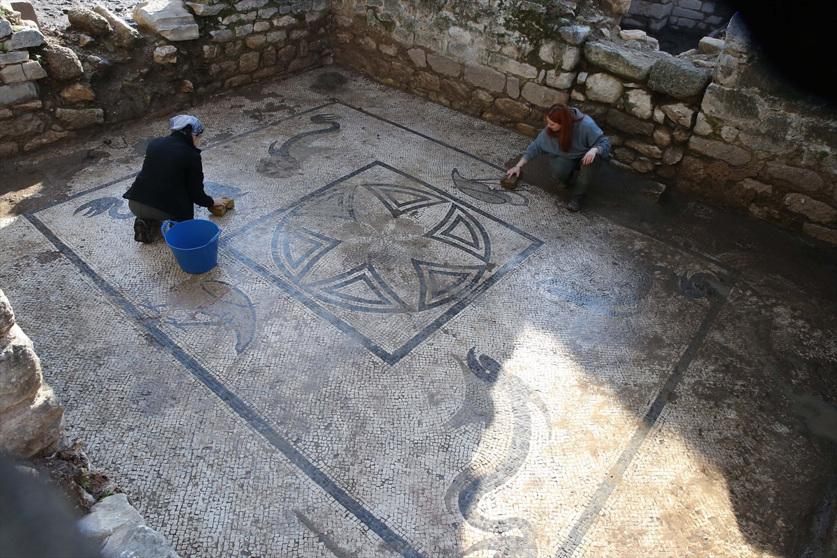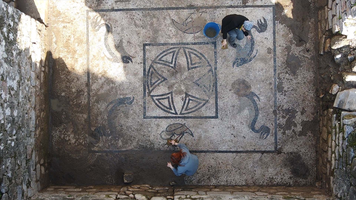 Büyüközer, hamamın taban düzenlemesinin kayalarla yapıldığı için mozaiklerin sağlam kalabildiğini vurguladı.