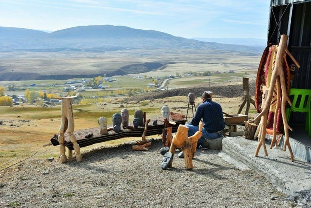 Muş'un Varto ilçesinde çobanlıkla ailesini geçindiren 34 yaşındaki Vedat Yalçın'ın çeşitli malzemelerle yaptığı heykeller, görenlerin dikkatini çekiyor. Sergi açmak istediğini vurgulayan Yalçın, "4 yıl önce çobanlık yaparken bir taş gördüm, sanki 'ben sıradan bir taş değilim' dercesine dikkatimi çekti. Onu alıp işlemeye başladım ve o günden sonra ağaçtan, taştan ve birçok atık malzemeden heykel yaptım" dedi.