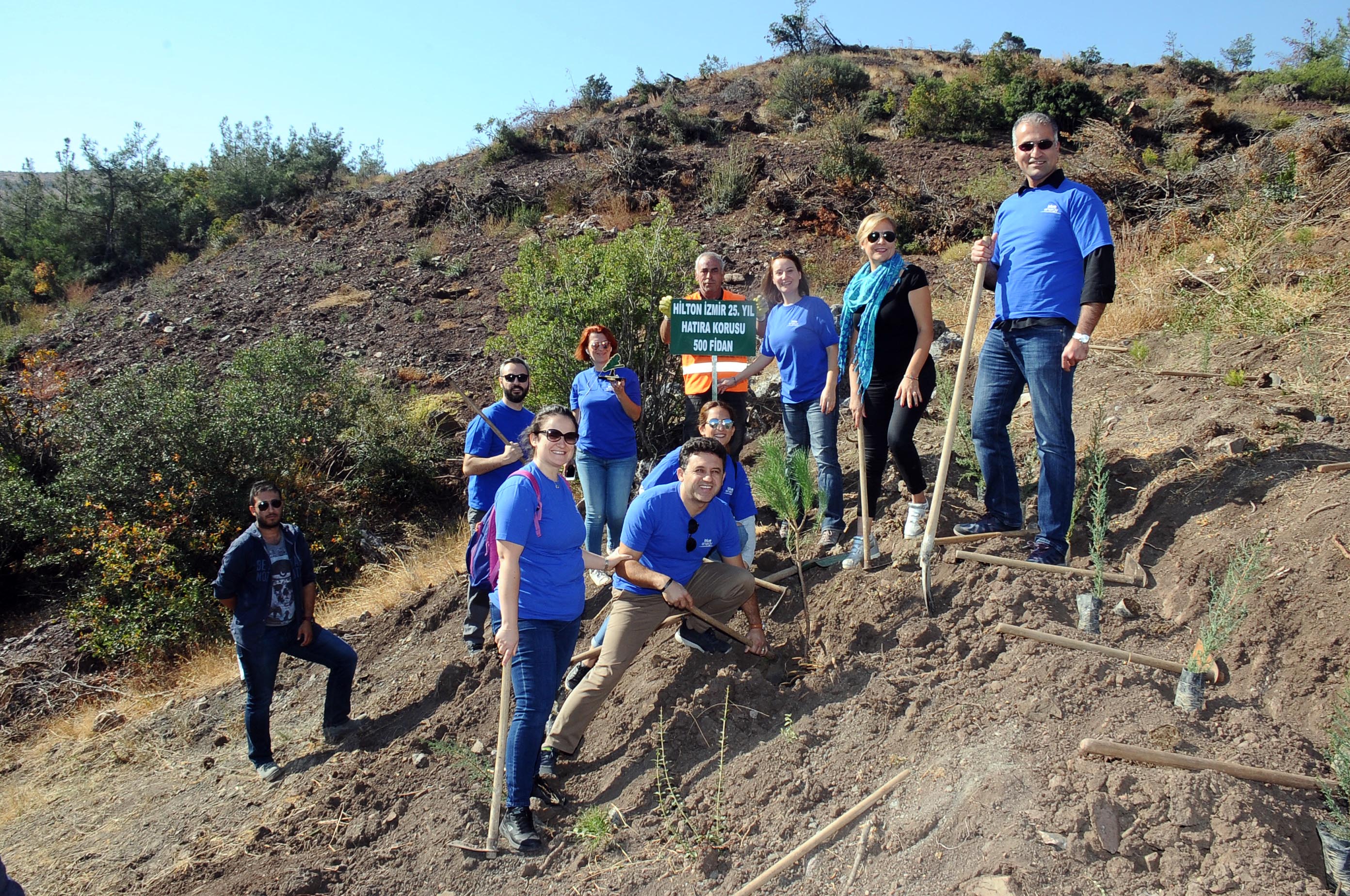 Hilton İzmir’de kuruluşunun 25’nci yılı ile birlikte tüm dünyada Hilton otelleri olarak düzenlenen hizmet ayı kutlamasını da gerçekleştiriyor. Hizmet ayı kutlaması kapsamında çevre temizliği, kermeslerler düzenlenirken, 25’nci yıl kutlamaları çerçevesinde ise yine çevre duyarlılığı göstererek 500 fidanlık koru oluşturdu.