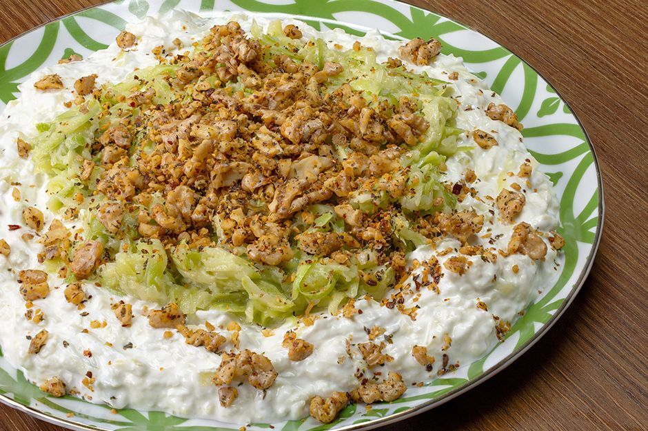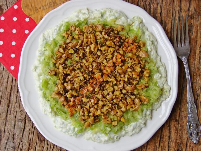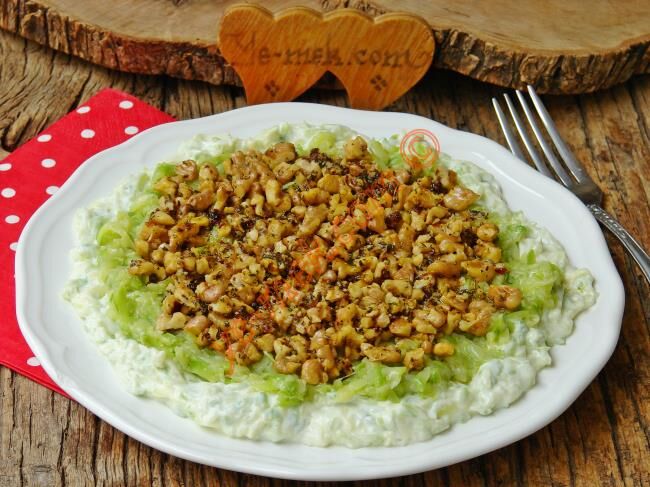 -Kabakların yarısını ekleyip tekrar karıştıralım ve servis tabağına alalım kalan kabakları yoğurdun üzerine dökelim.