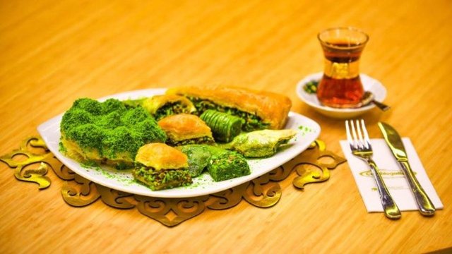 Baklava, şıllık tatlısı, şöbiyet, burma kadayıfı, fıstık ezmesi