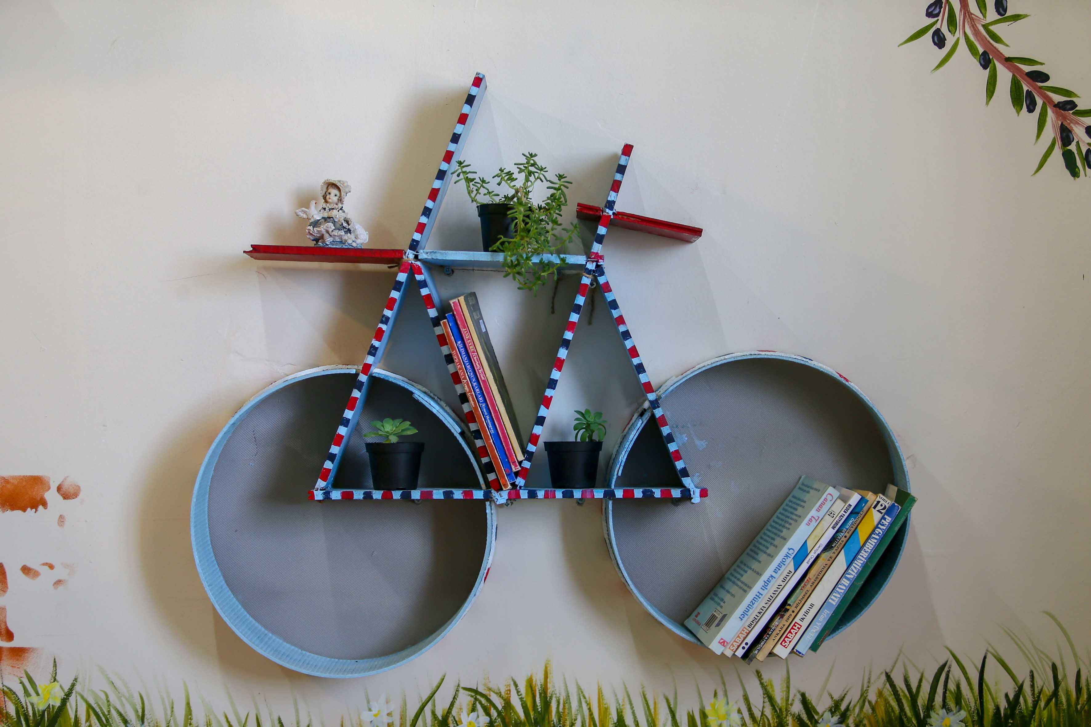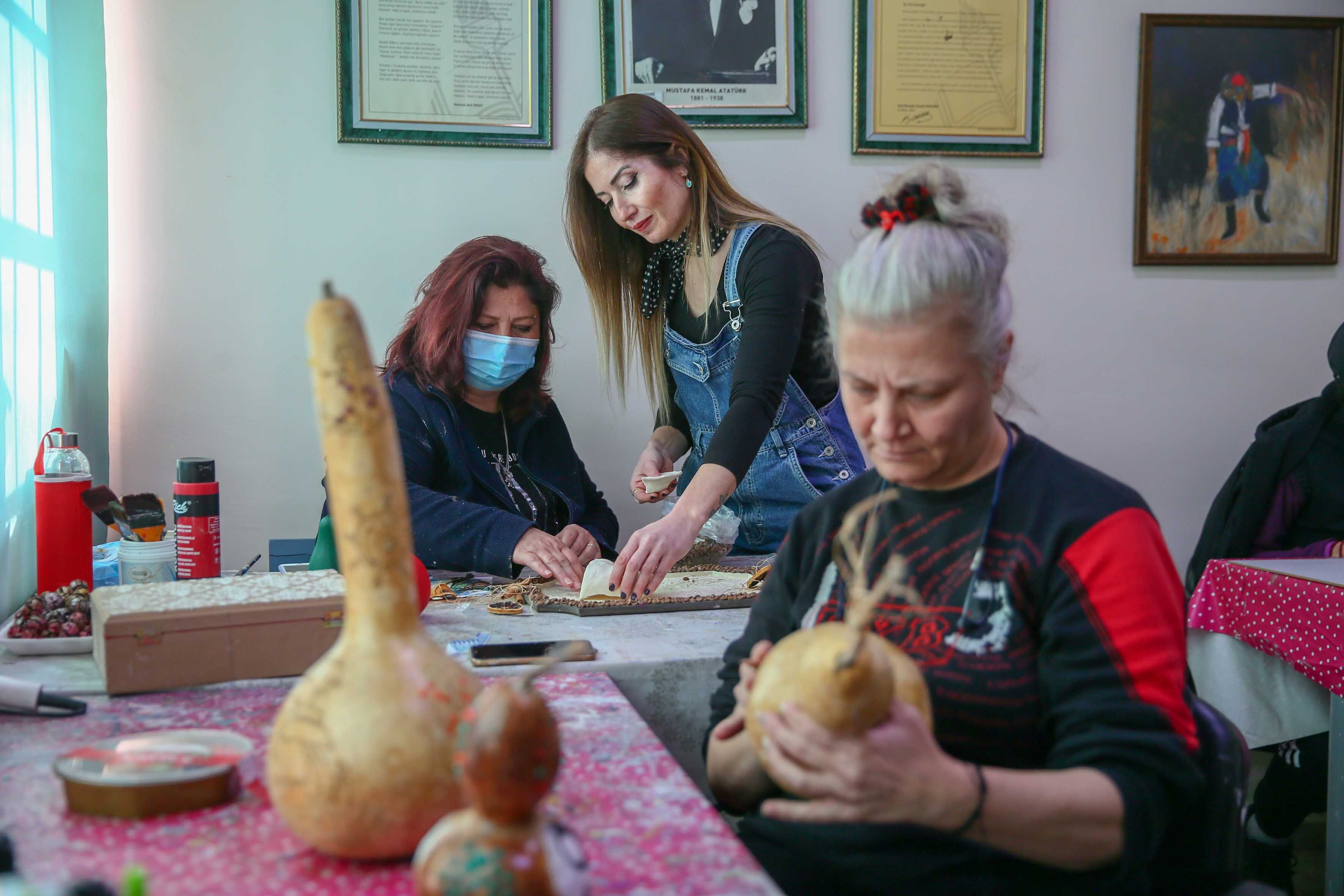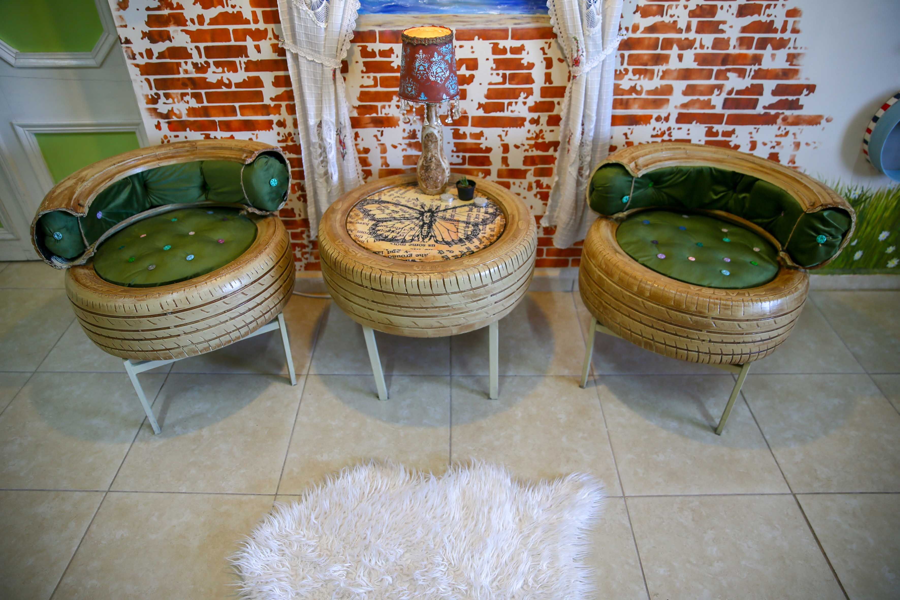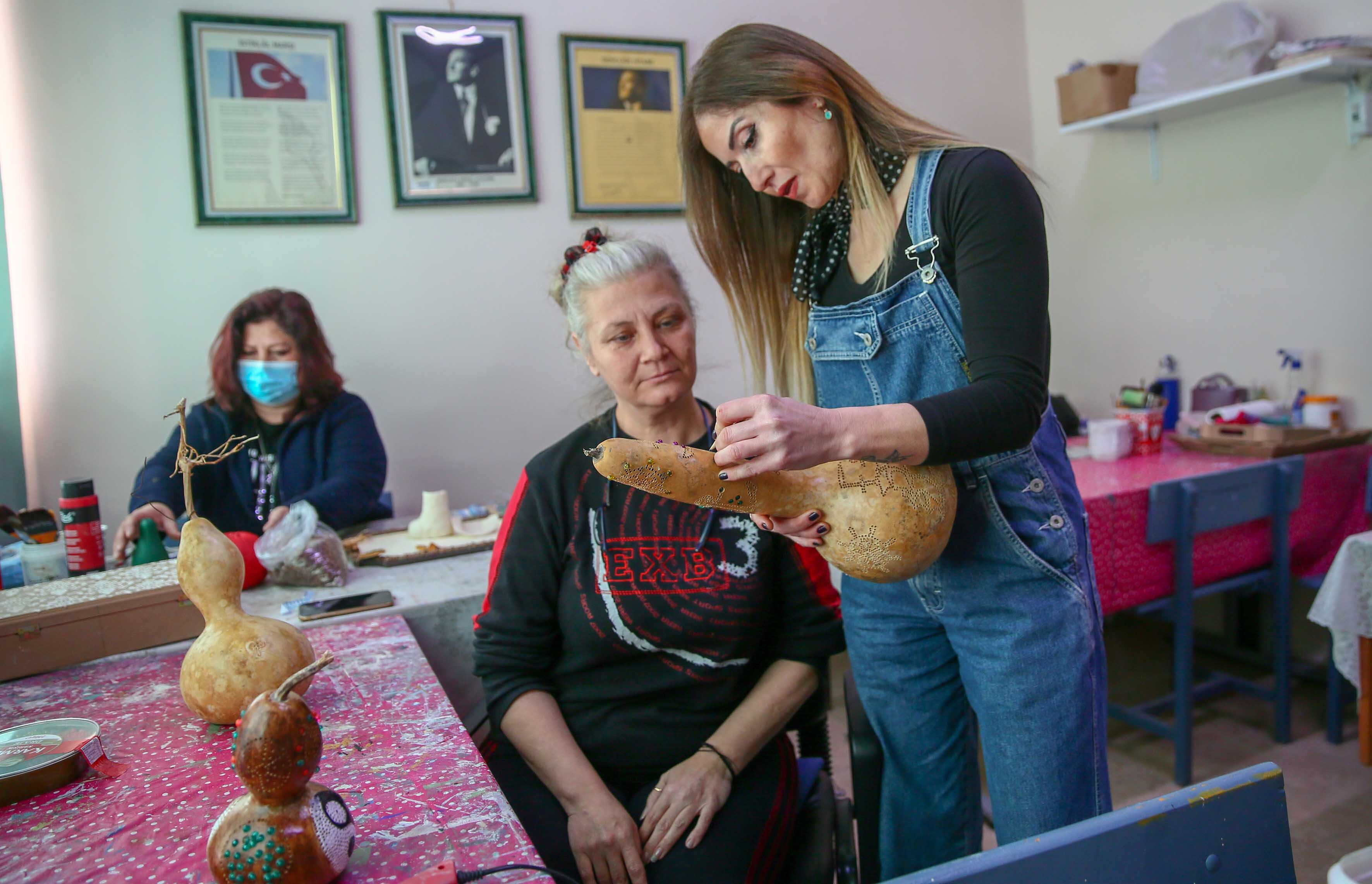 Merkezde 12 yıl dekoratif el sanatları, aşçılık, pastacılık gibi konularda eğitim gören ve usta öğreticilik belgesi alarak eğitim vermeye başlayan Hazbiye Güdem, ustalığını gösterdiği kütüphane için hurdalıklardan topladığı atıkları kullandı.