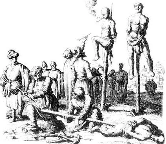 Saniyeler içinde uzuvları kırılan beden parçalara ayrılır ve çark çarmıha gerilmiş gibi bir direğe asılırdı. Dahası mı? Ölü beden ise hayvanlar ve kuşlara yem olması için çürümeye bırakılırdı!