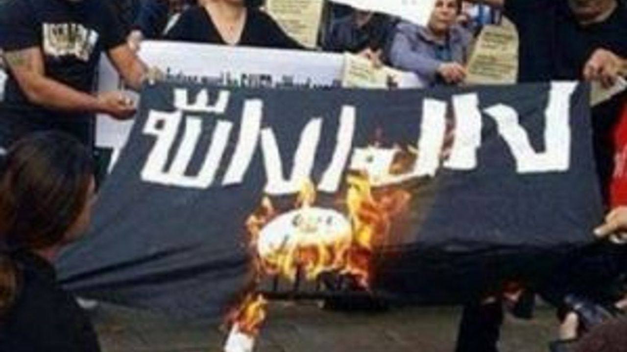 Terör örgütü IŞİD`i protesto eden bir grup, örgütün bayrağını yakarak yeni bir "Bir kova buz" kampanyası yarattı.