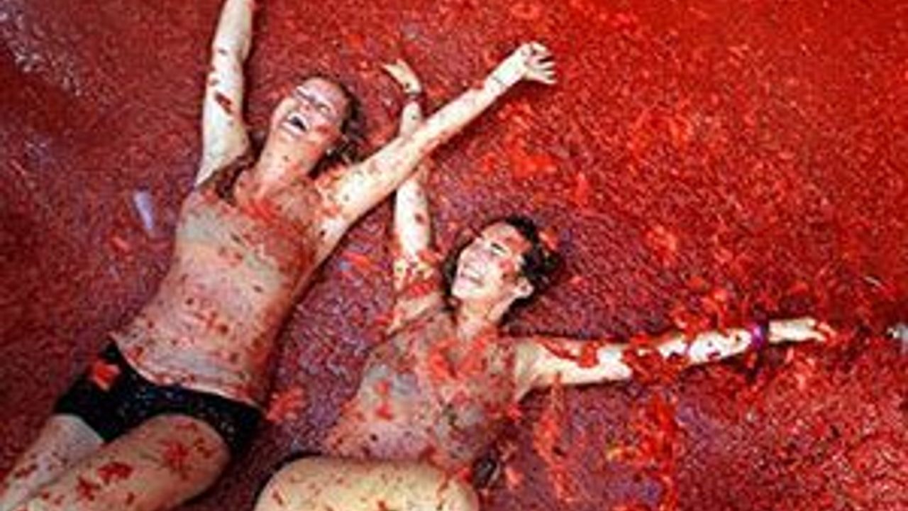 İspanya'daki domates festivaline katılan 20 bin kişi birbirini domates yağmuruna tuttu. Bunol kasabasının sokakları kırmızıya boyandı.