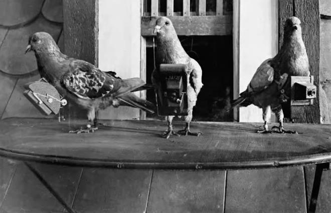 Gizli kameralarla donatılmış güvercinler , Birinci Dünya Savaşı ve İkinci Dünya Savaşı sırasında askeri savaş alanlarını, hedefleri ve bölgeleri haritalamak için kullanıldı.