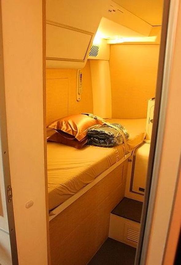 Uçağa bağlı olarak değişse de kabin ekibinin dinlenme odaları, genellikle kokpitin arkasında, first class üzerinde bulunuyor; Boeing 777'de olduğu gibi.